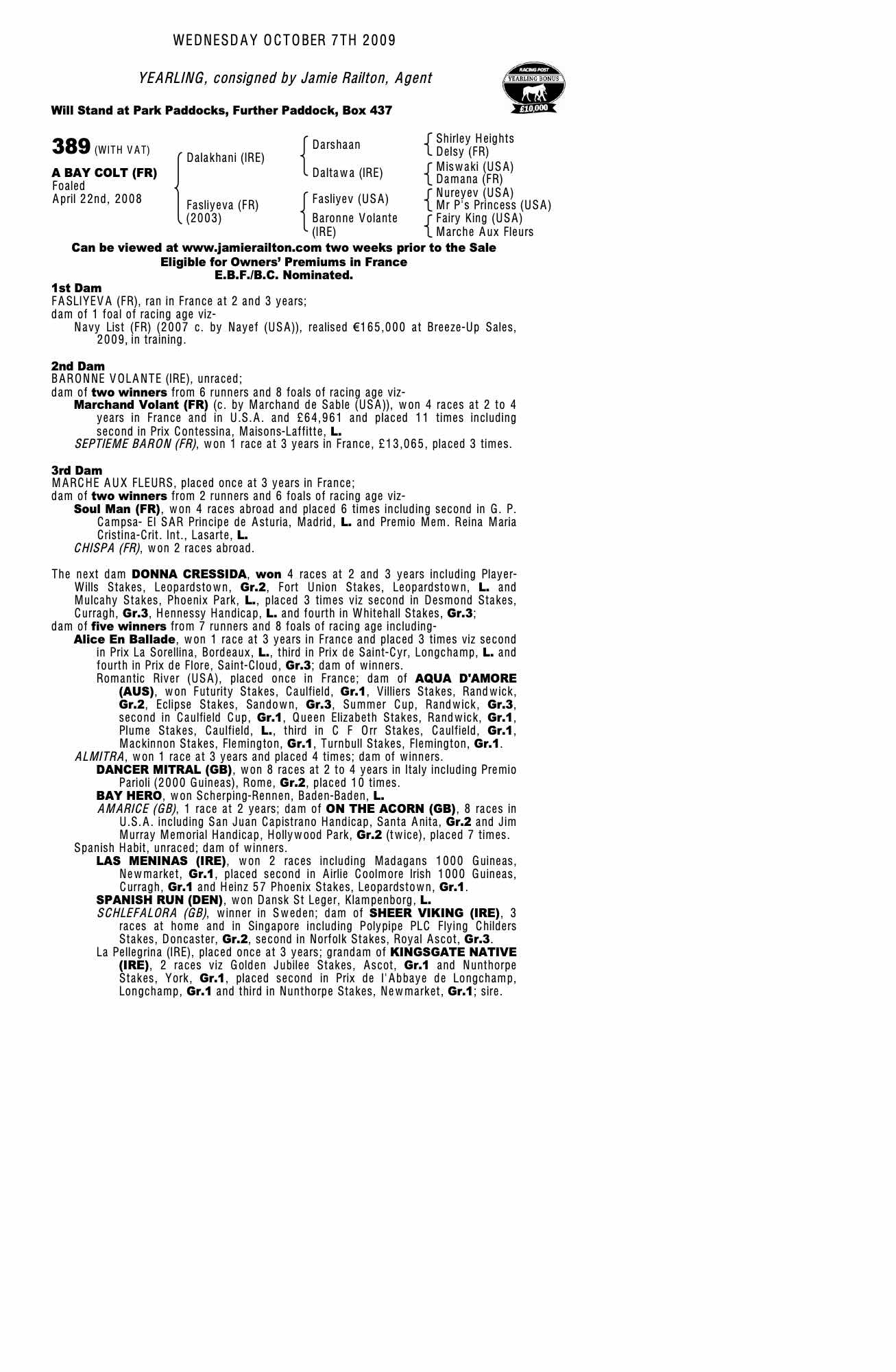 Craven Breeze Up Sale 2009 lot 60 C. by Nayef (USA) 2007, Bansha House Stables, Ireland=>Vendor 45,000 gns