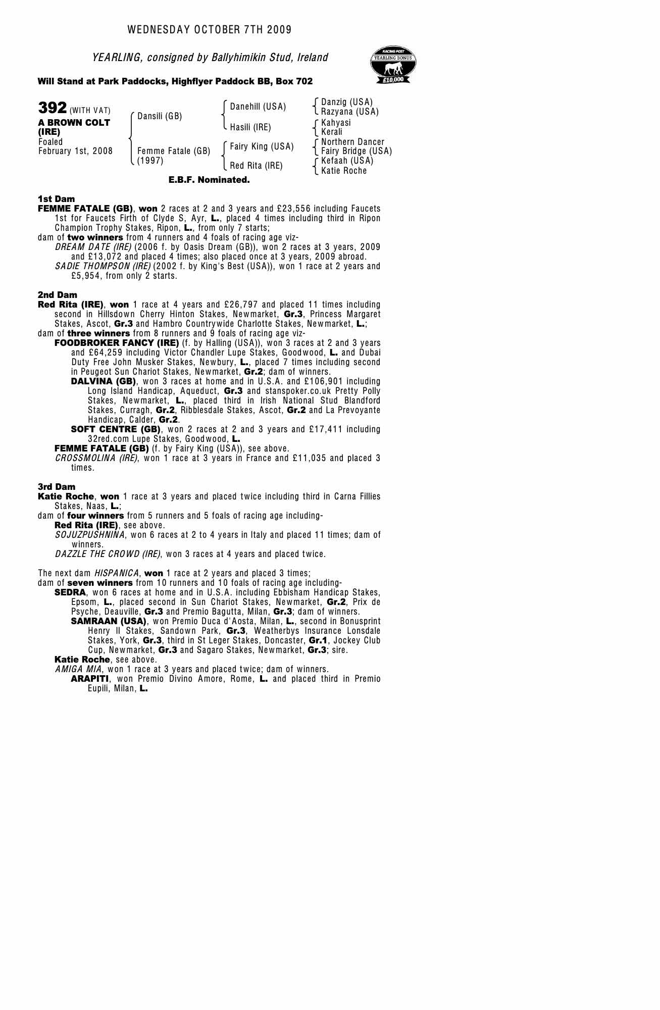 Consignor: Ballyhimikin Stud, Ireland