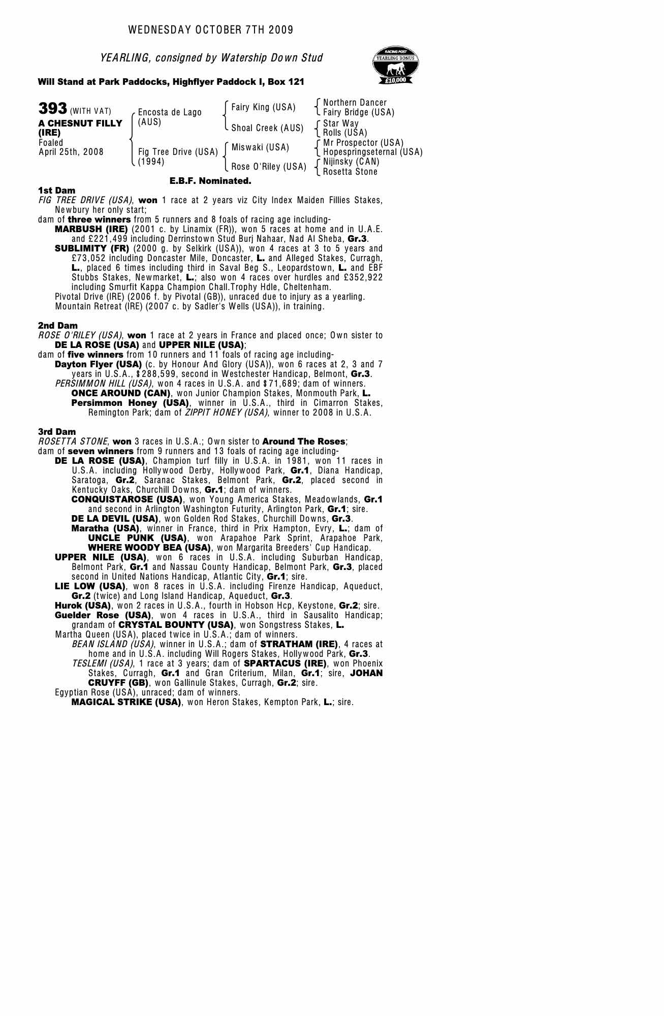October Yearling Sale, Book 1 2005 lot 229 F. by Sadler's Wells (USA) 2004, Watership Down Stud=>Anthony Stroud Bloodstock 270,000 gns