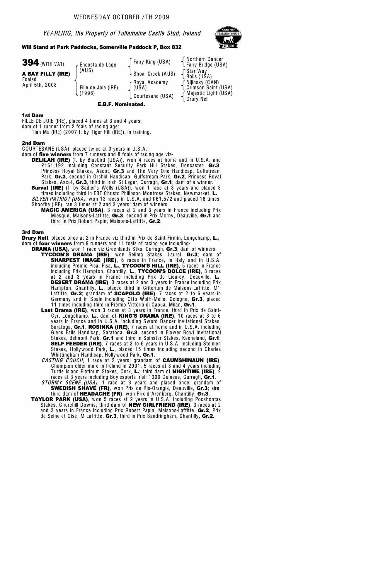 October Yearling Sale, Book 2 2008 lot 1313 F. by Tiger Hill (IRE) 2007, Tullamaine Castle Stud, Ireland=>Litex Commerce 3,000 gns