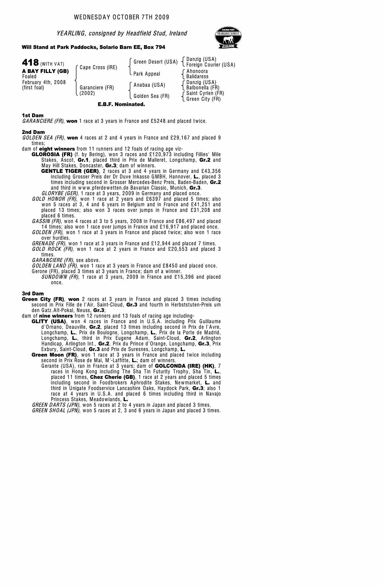 Consignor: Headfield Stud, Ireland