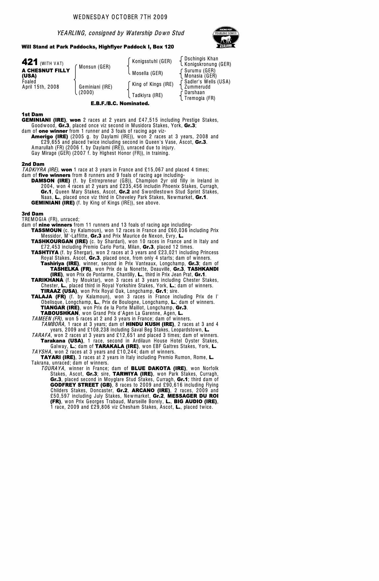 December Mare Sale 2009 lot 1614 Amarullah (FR) (F. by Daylami (IRE)), Kiltinan Castle Stud, Ireland=>Selwood Bloodstock 11,000 gns