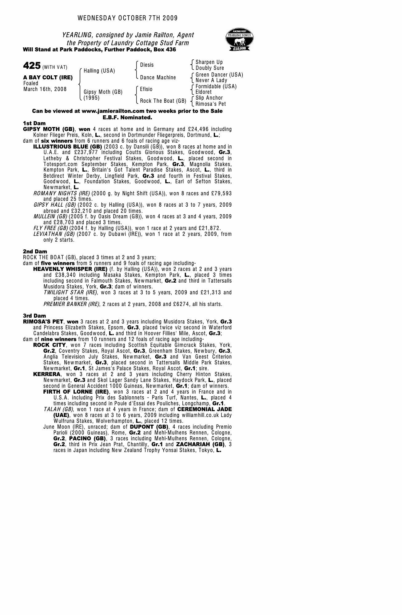 December Foal Sale 2004 lot 845 F. 2004, Jamie Railton, Agent=>Damian Burns 20,000 gns