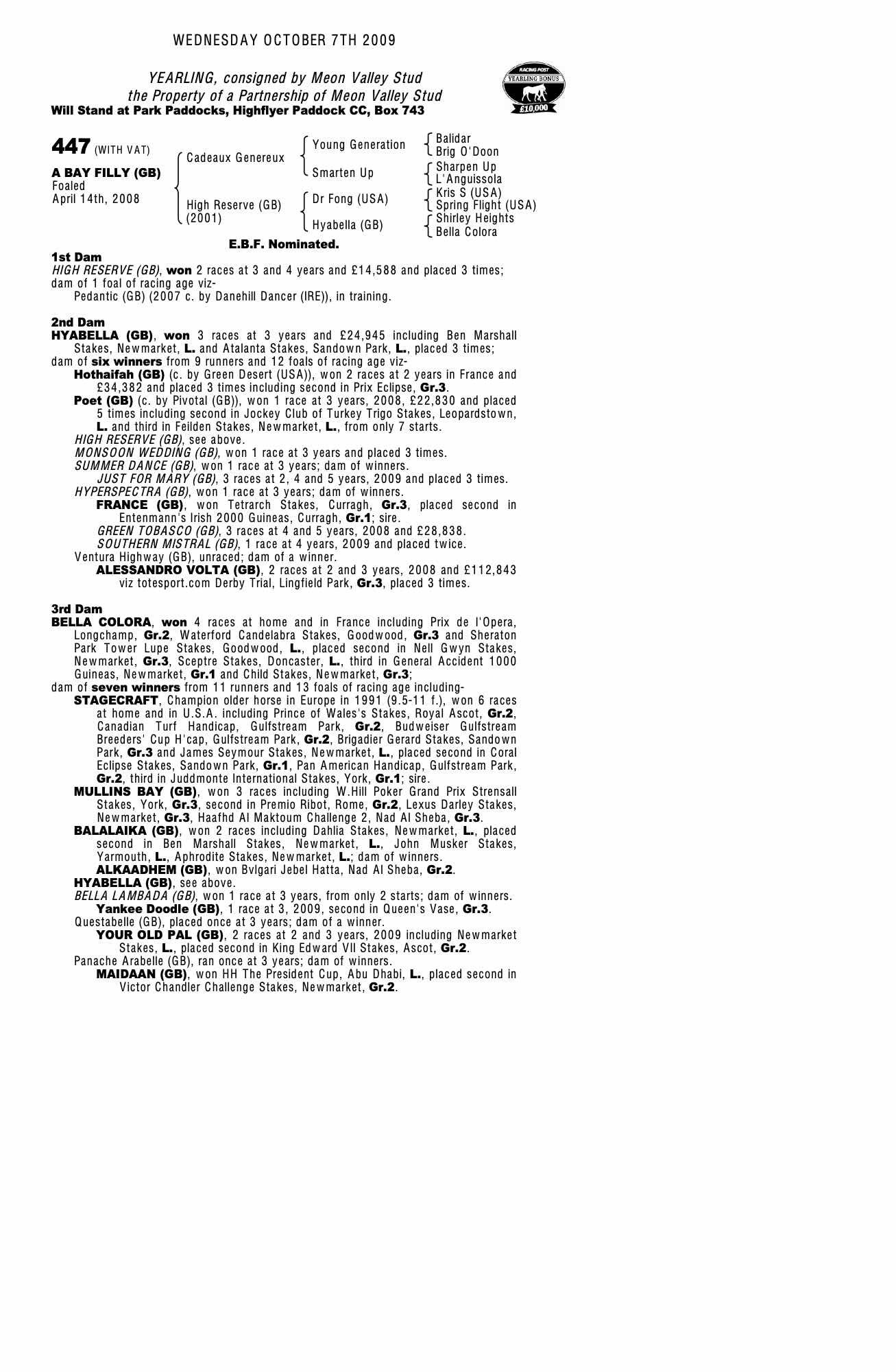 October Yearling Sale, Book 2 2010 lot 1147 F. by Haafhd (GB) 2009, Meon Valley Stud=>Vendor 16,000 gns