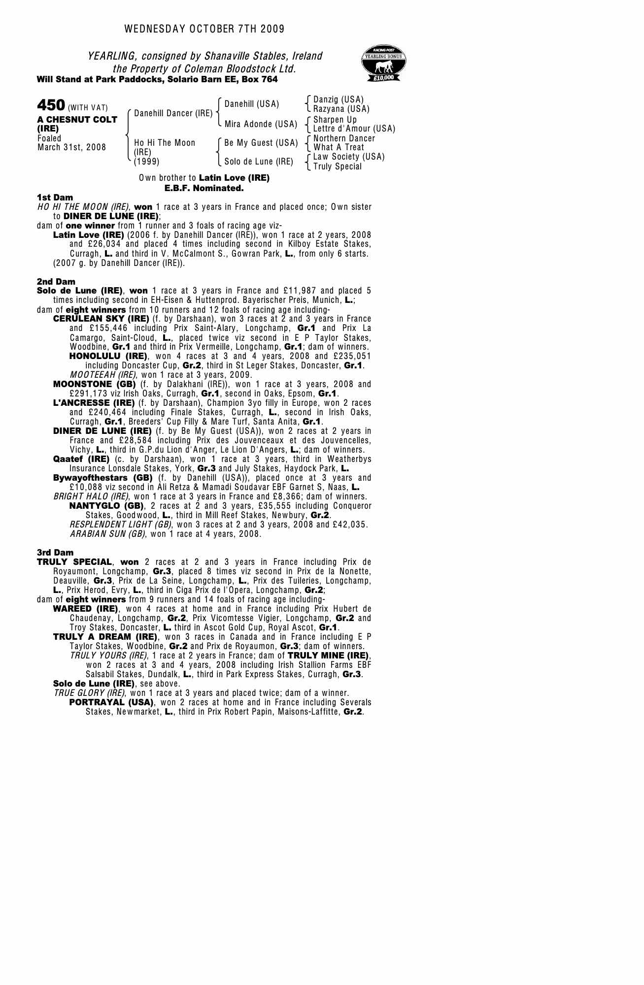 October Yearling Sale, Book 1 2010 lot 295 F. by Dylan Thomas (IRE) 2009, Coleman Stud, Ireland=>Lot Not Sold 64,000 gns