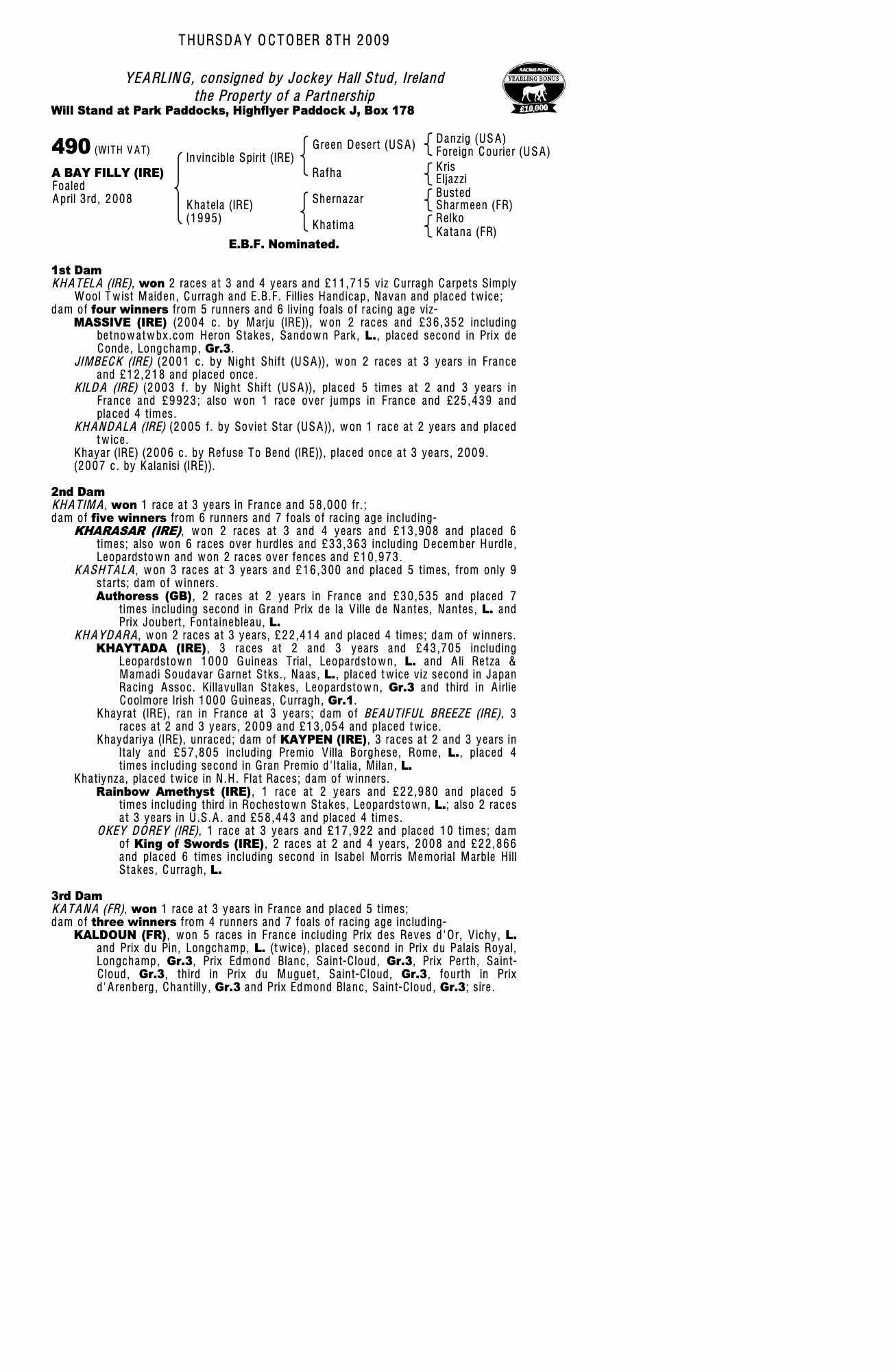 Consignor: Jockey Hall Stud, Ireland