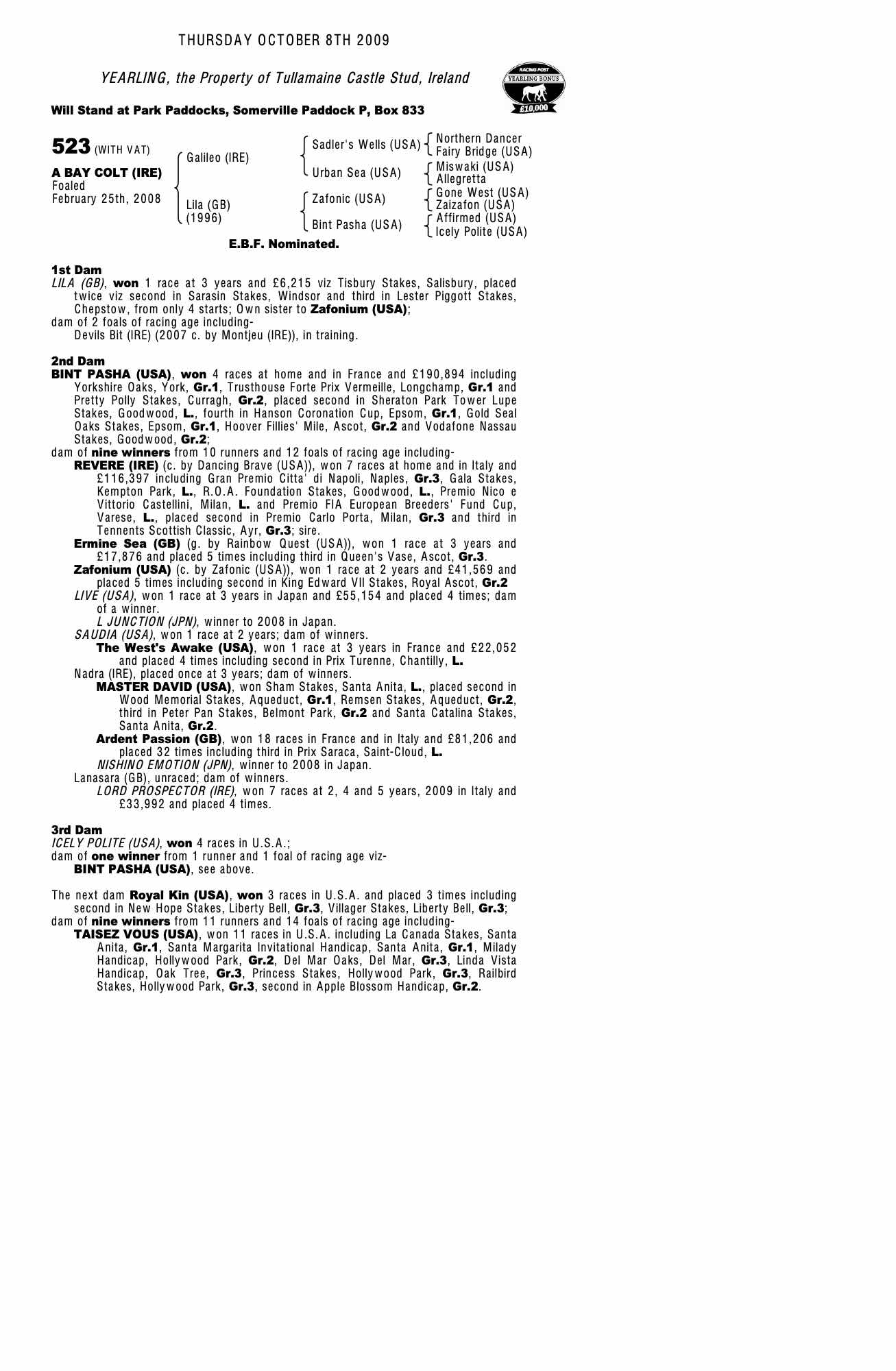 Consignor: Tullamaine Castle Stud, Ireland