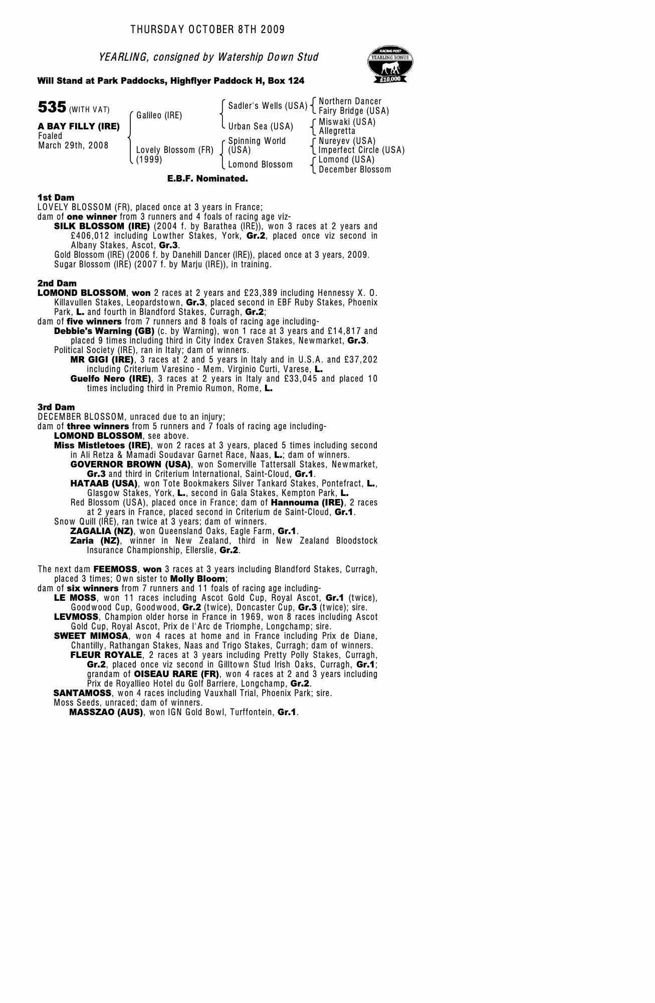 October Yearling Sale, Book 1 2010 lot 388 F. by Barathea (IRE) 2009, Watership Down Stud=>Shadwell Estate Company 280,000 gns