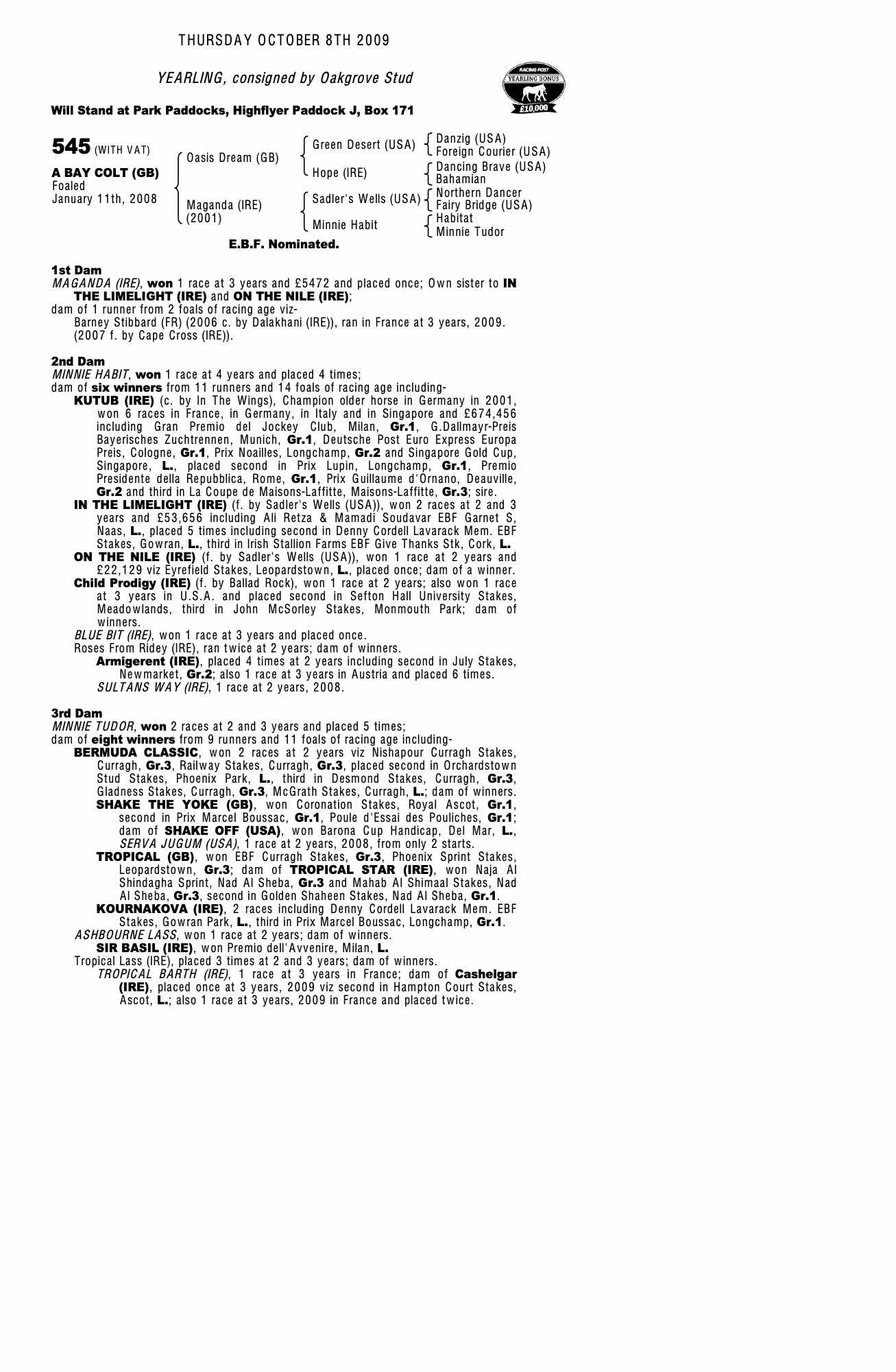 October Yearling Sale, Book 1 2010 lot 400 F. by Green Desert (USA) 2009, Oakgrove Stud=>Dwayne Woods 450,000 gns