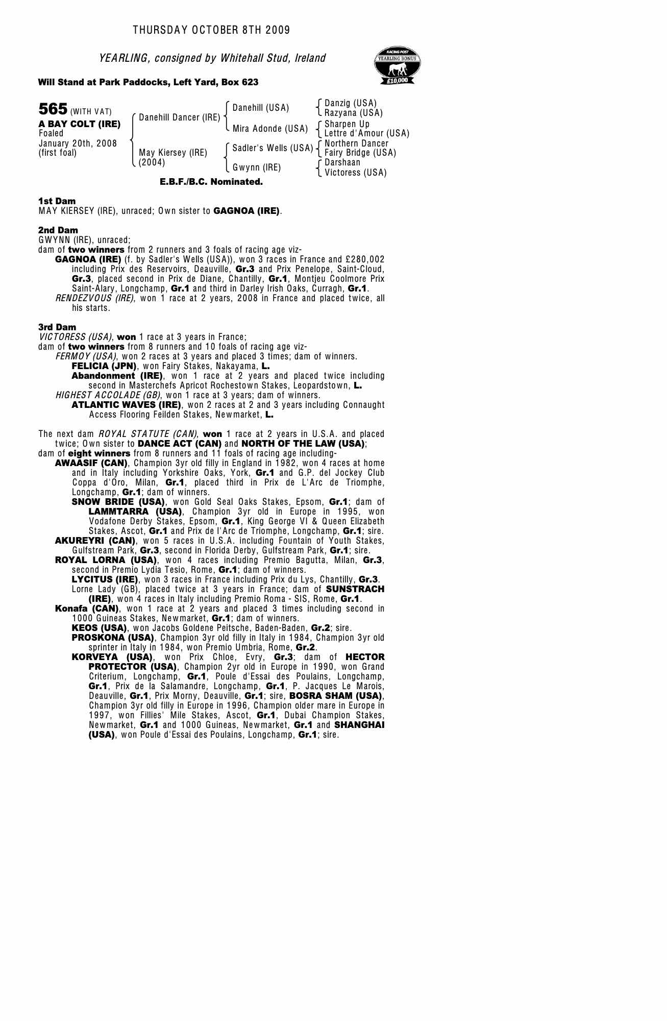 December Foal Sale 2008 lot 1120 C. 2008, Castledillon Stud, Ireland (Agent)=>Gerard Hourigan 62,000 gns