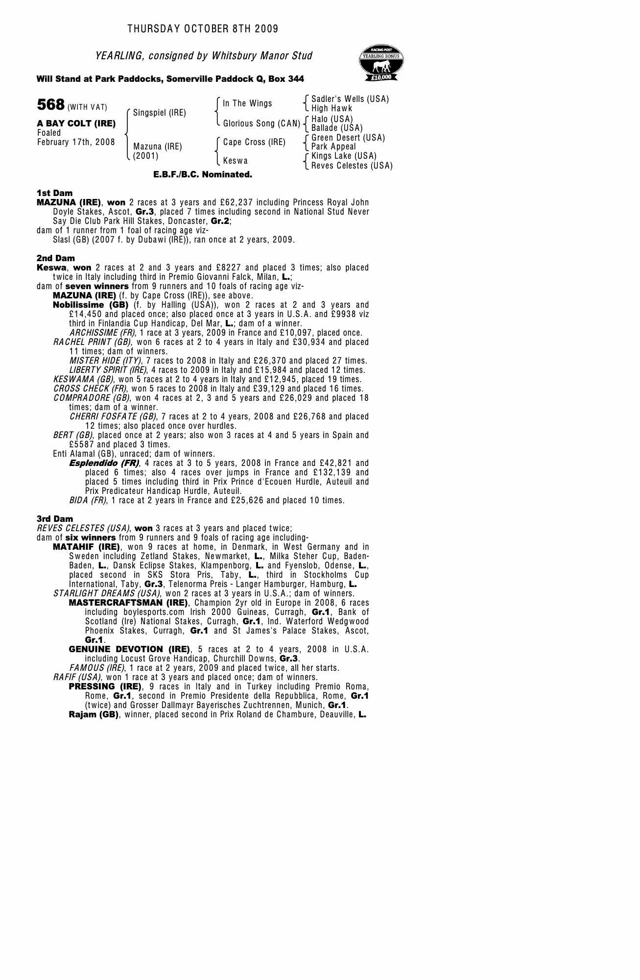 October Yearling Sale, Book 2 2008 lot 681 F. by Dubawi (IRE) 2007, Highclere Stud=>Troy Steve 15,000 gns