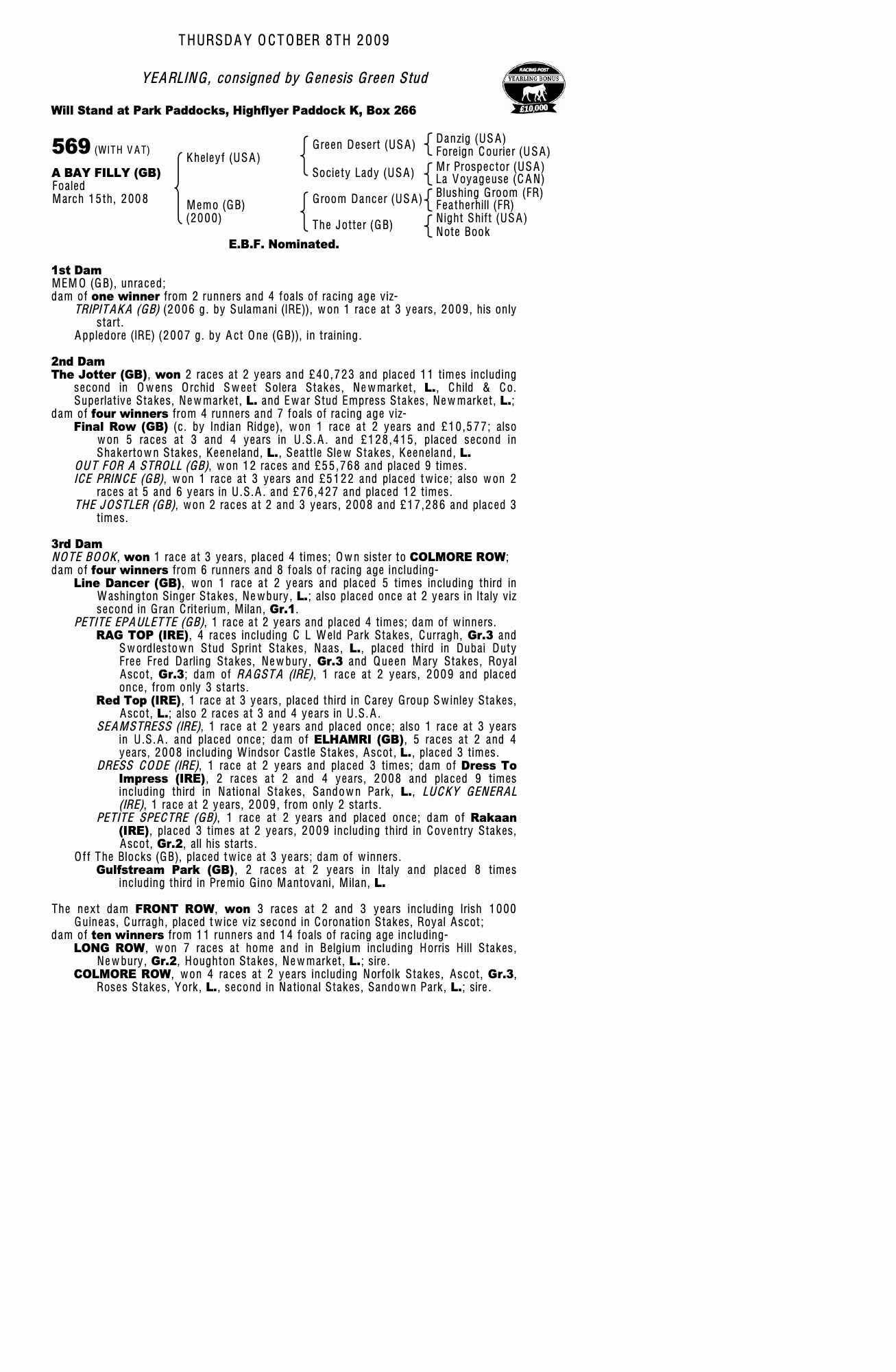 October Yearling Sale, Book 3 2008 lot 1489 C. by Act One (GB) 2007, Genesis Green Stud=>Vendor 4,500 gns