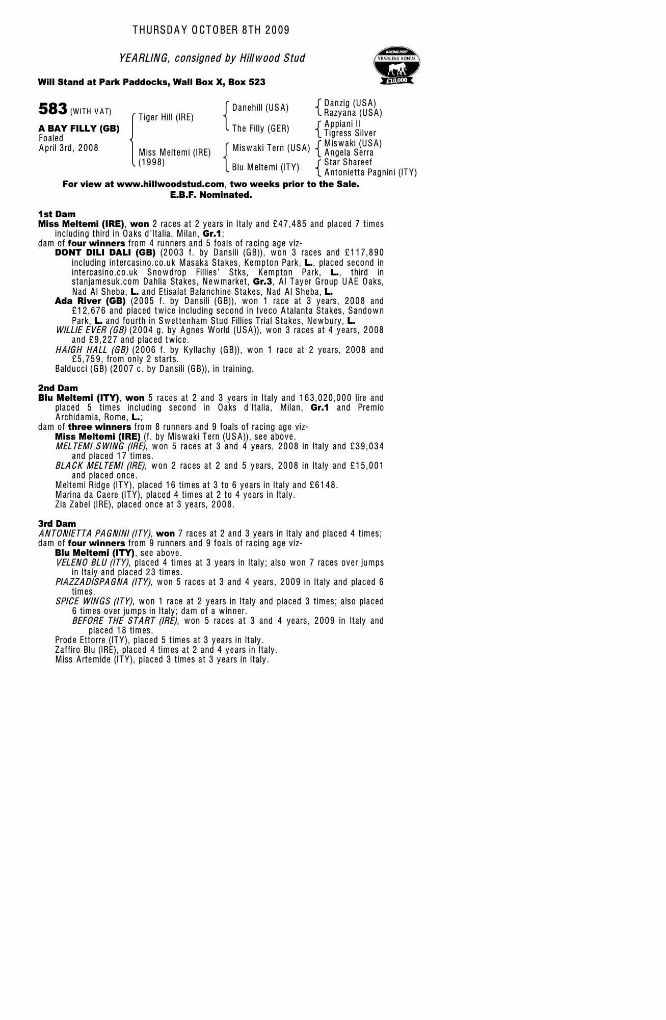 October Yearling Sale, Book 2 2004 lot 1020 F. by Dansili (GB) 2003, Hedsor Stud=>Stanley Moore 7,500 gns