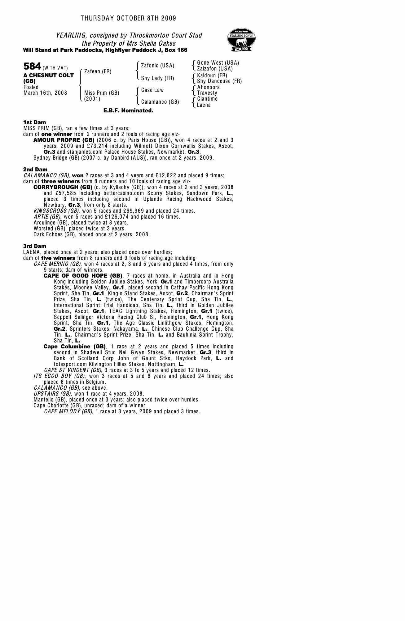 October Yearling Sale, Book 3 2008 lot 1776 C. by Danbird (AUS) 2007, Throckmorton Court Stud=>Tally-Ho Stud 17,000 gns