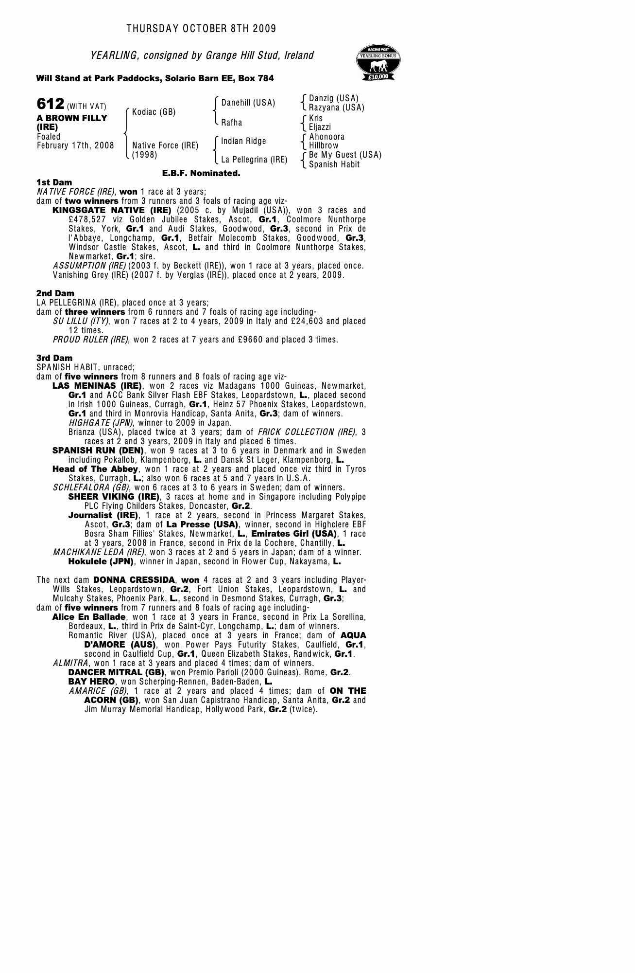 Consignor: Grange Hill Stud, Ireland