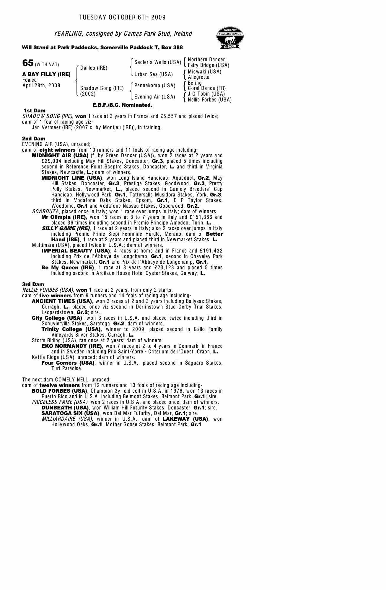 Consignor: Camas Park Stud, Ireland