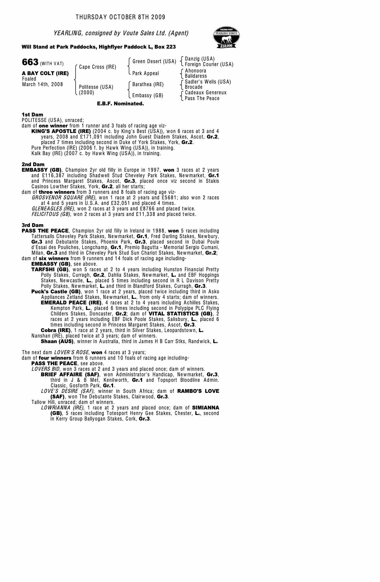 December Mare Sale 2009 lot 1468 Pure Perfection (IRE) (F. by Hawk Wing (USA)), Voute Sales Ltd. (Agent)=>JR Banahan 10,000 gns