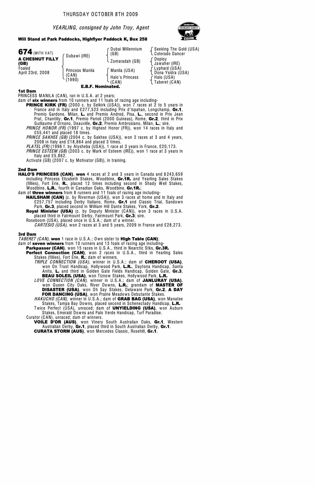 October Yearling Sale, Book 2 2010 lot 1469 F. by Pivotal (GB) 2009, John Troy, Agent=>BBA Ireland 100,000 gns