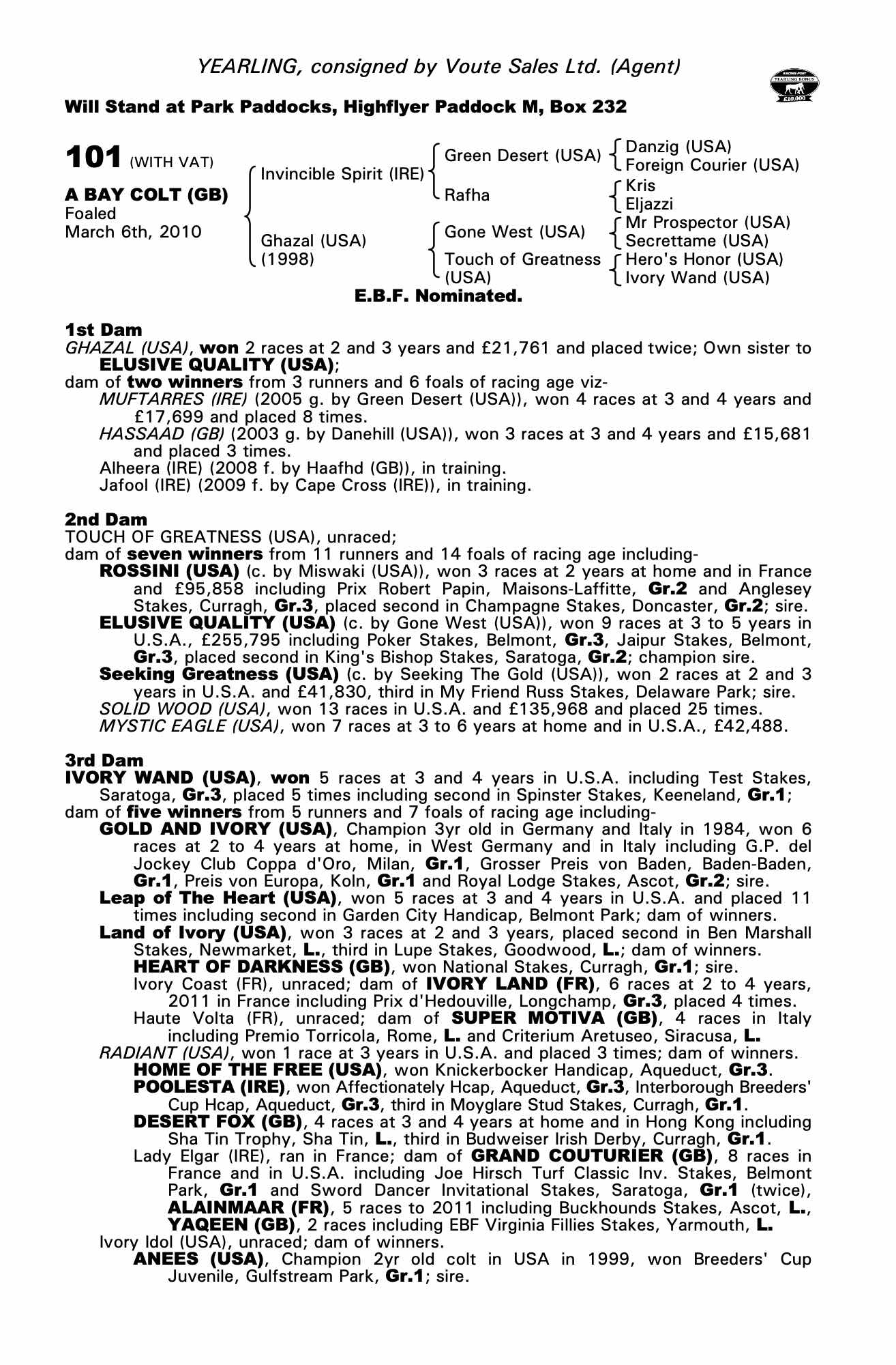 December Foal Sale 2010 lot 961, Voute Sales Ltd. (Agent)=>Vendor 130,000 gns