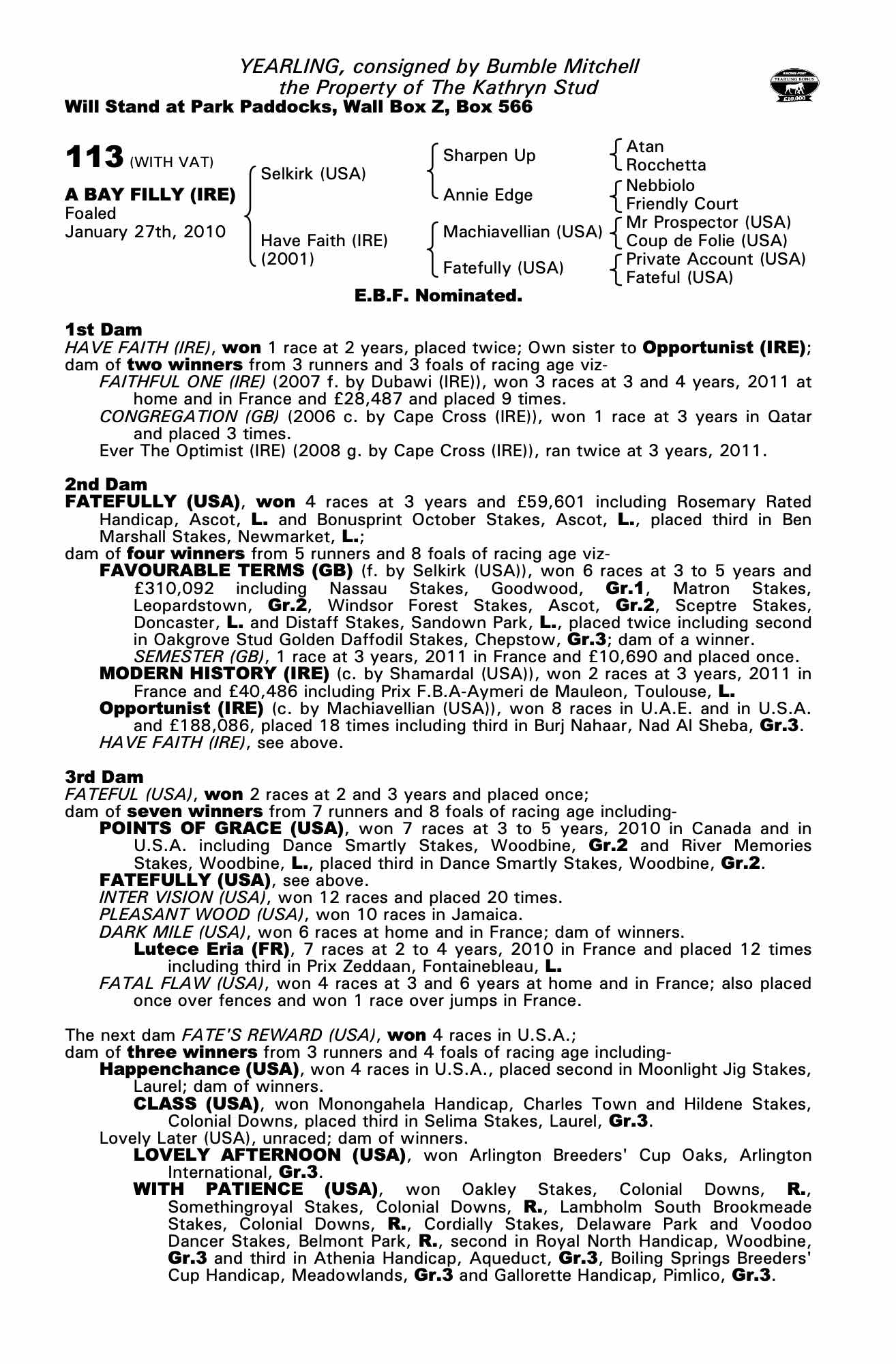 February Sale 2021 lot 337 Fly True (GB) (M. by Raven's Pass (USA)), Averham Park Stables (I. Furtado)=>Lot Not Sold 12,000 gns
