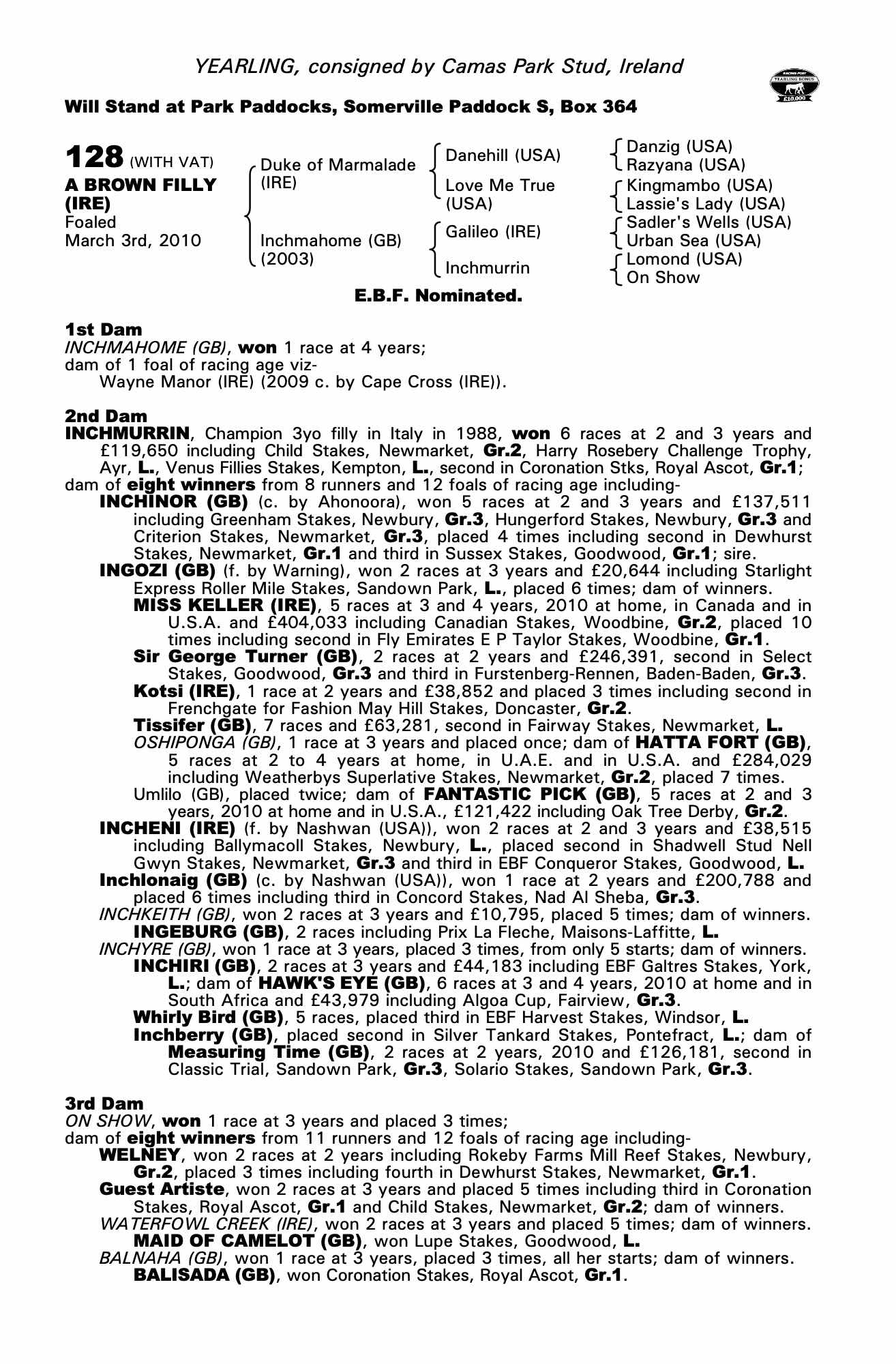 Consignor: Camas Park Stud, Ireland
