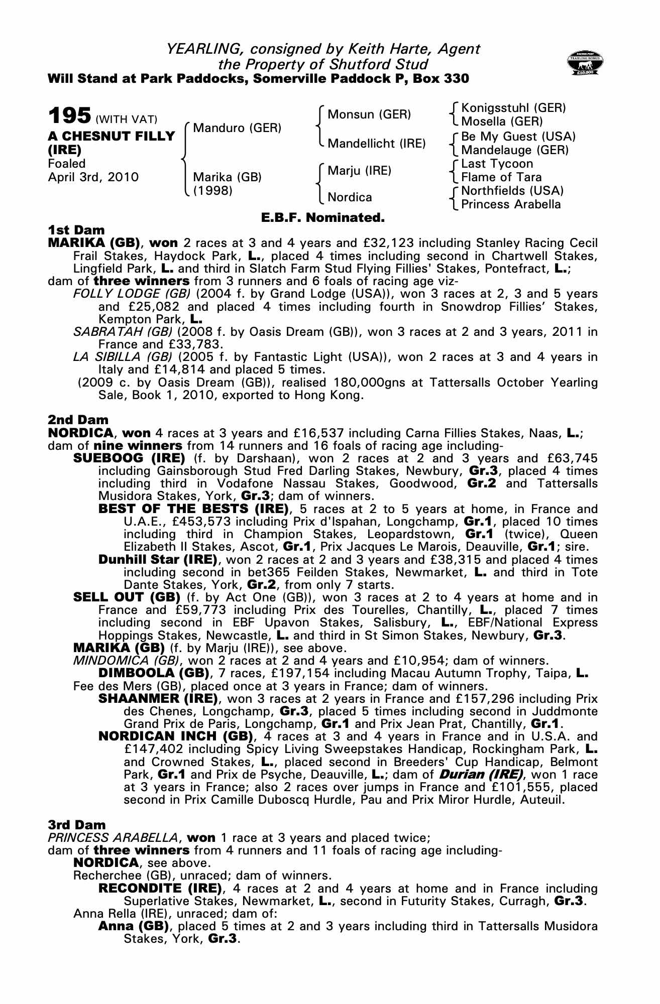 October Yearling Sale, Book 1 2012 lot 108 F. by Invincible Spirit (IRE) 2011, Keith Harte, Agent=>Stuart Stuckey 90,000 gns
