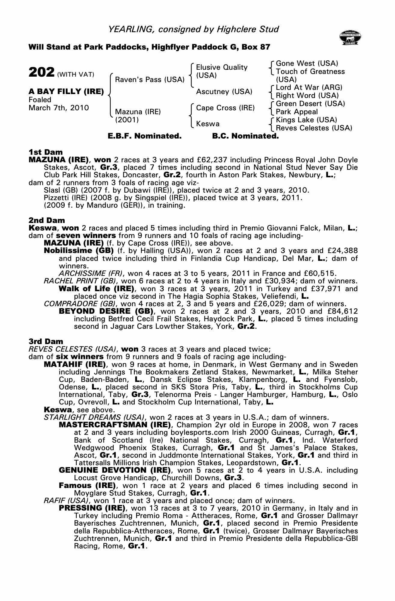 Consignor: Highclere Stud