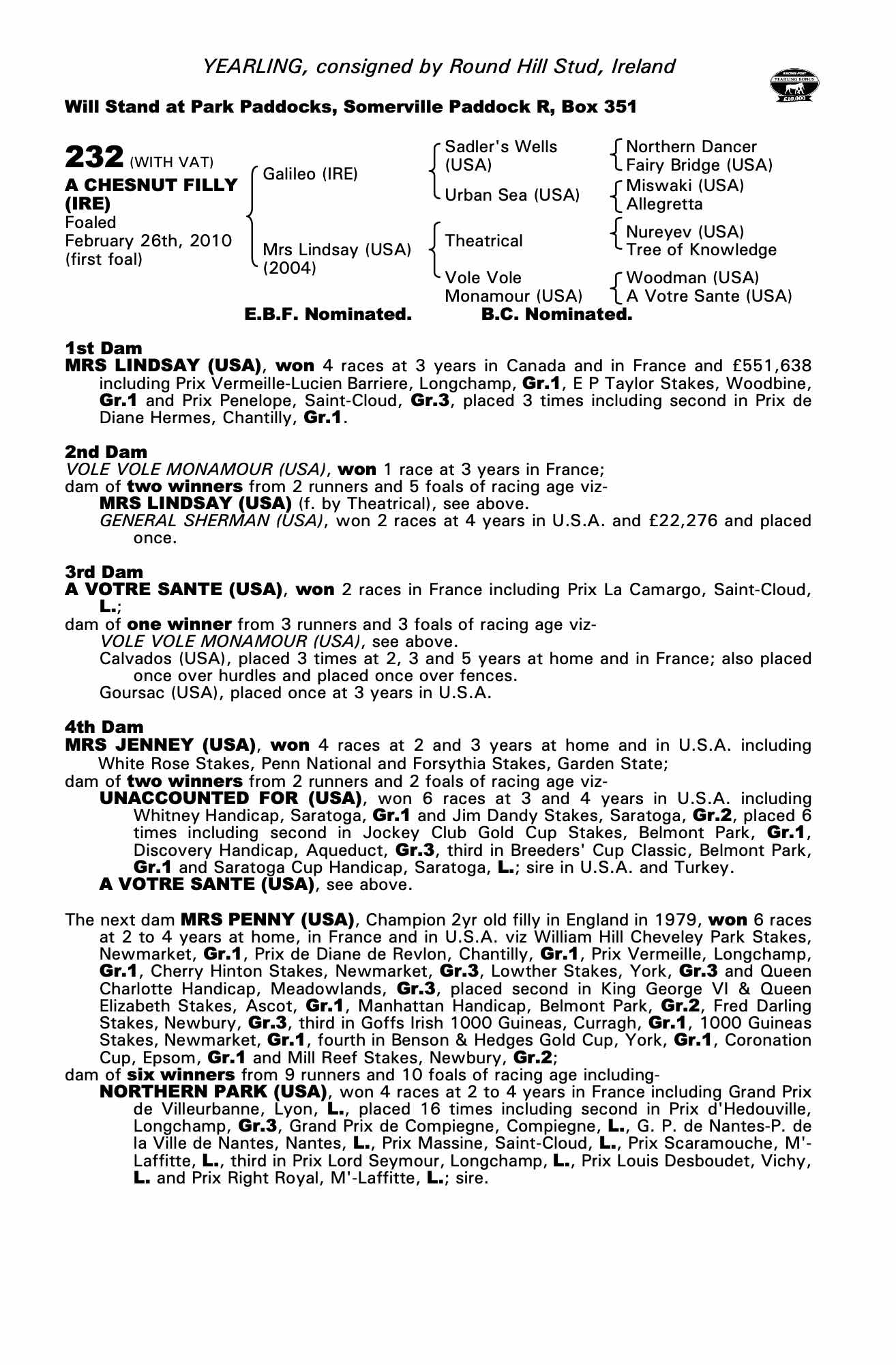 Consignor: Round Hill Stud, Ireland