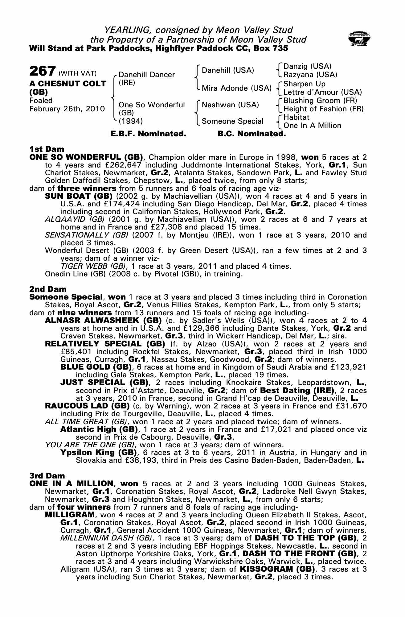 Consignor: Meon Valley Stud