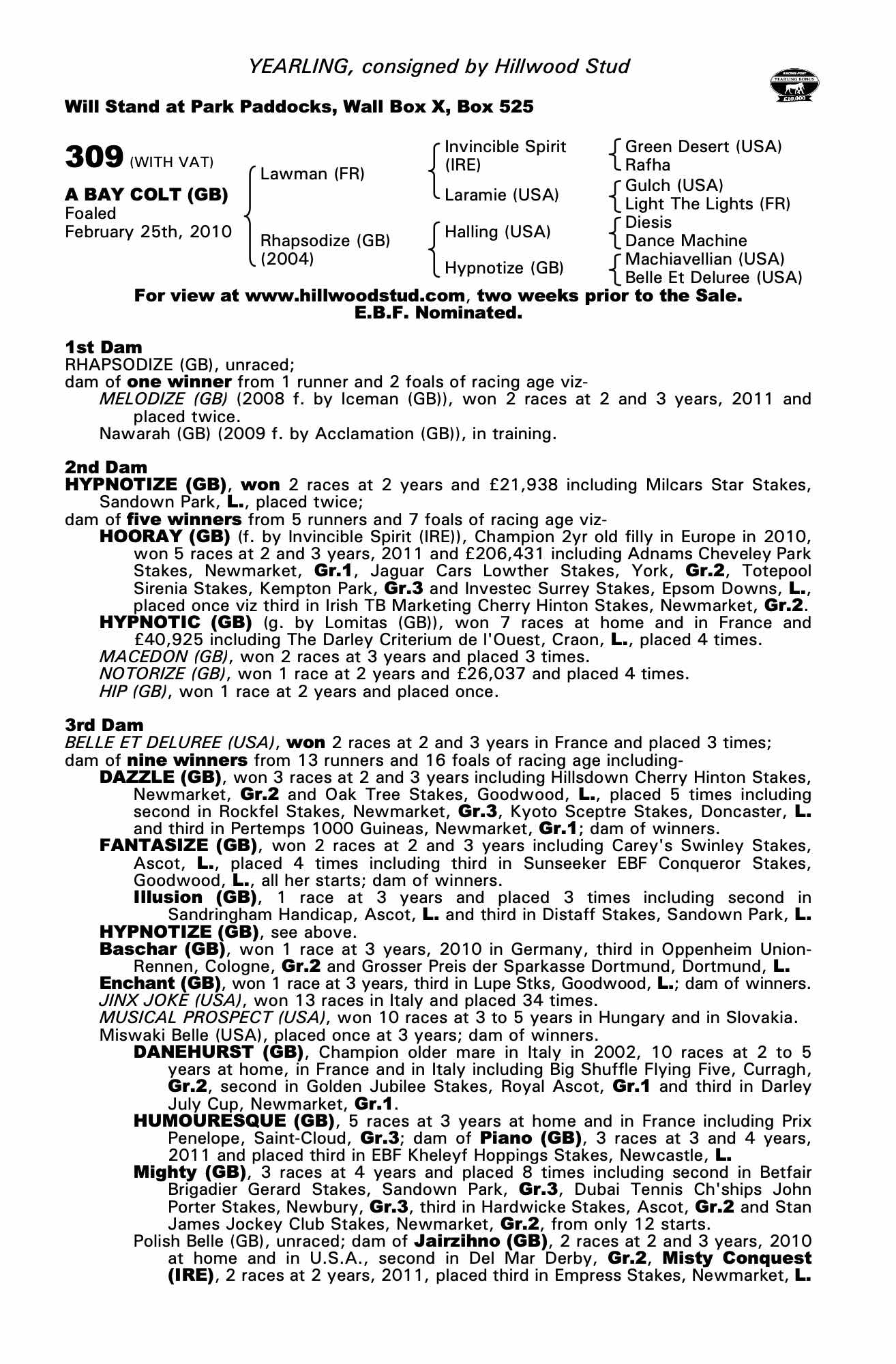 October Yearling Sale, Book 2 2012 lot 980 F. by Authorized (IRE) 2011, Hillwood Stud=>Vendor 13,000 gns