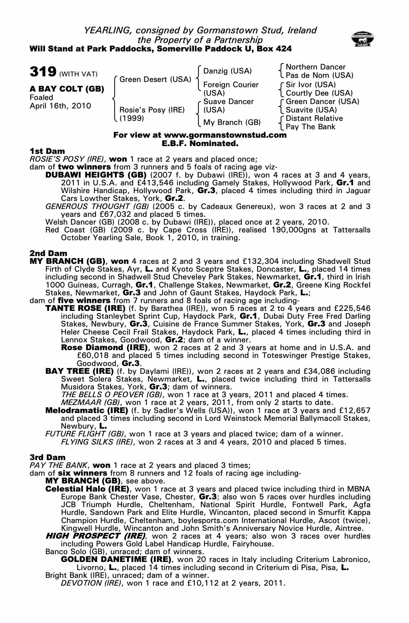 Online Charity Auction of Stallion Nominations lot 38 A Nomination to Make Believe (GB) (H. by Makfi (GB)), =>Bidding Closed £8,000