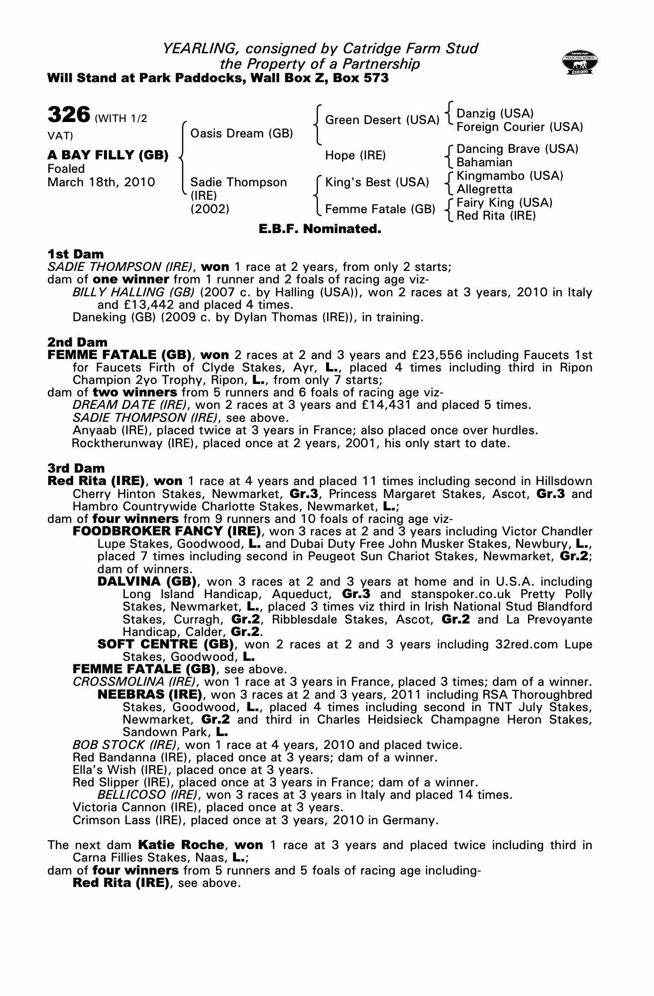October Yearling Sale, Book 2 2010 lot 1543 C. by Dylan Thomas (IRE) 2009, Crimbourne Stud=>Blandford Bloodstock 35,000 gns
