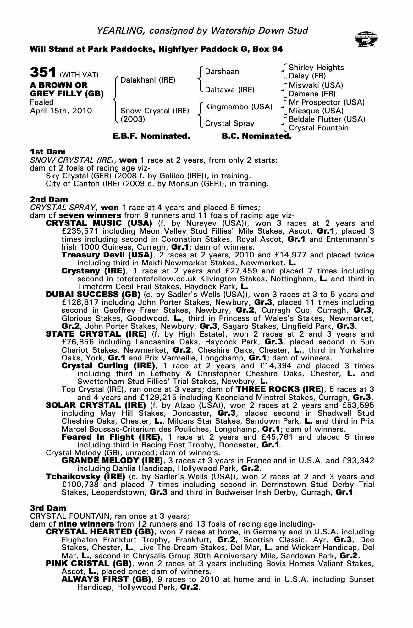 Consignor: Watership Down Stud