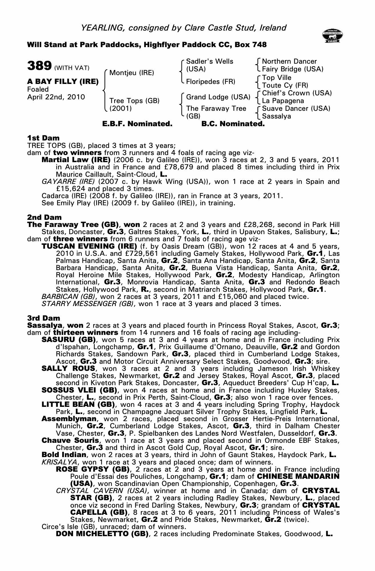 Consignor: Clare Castle Stud, Ireland