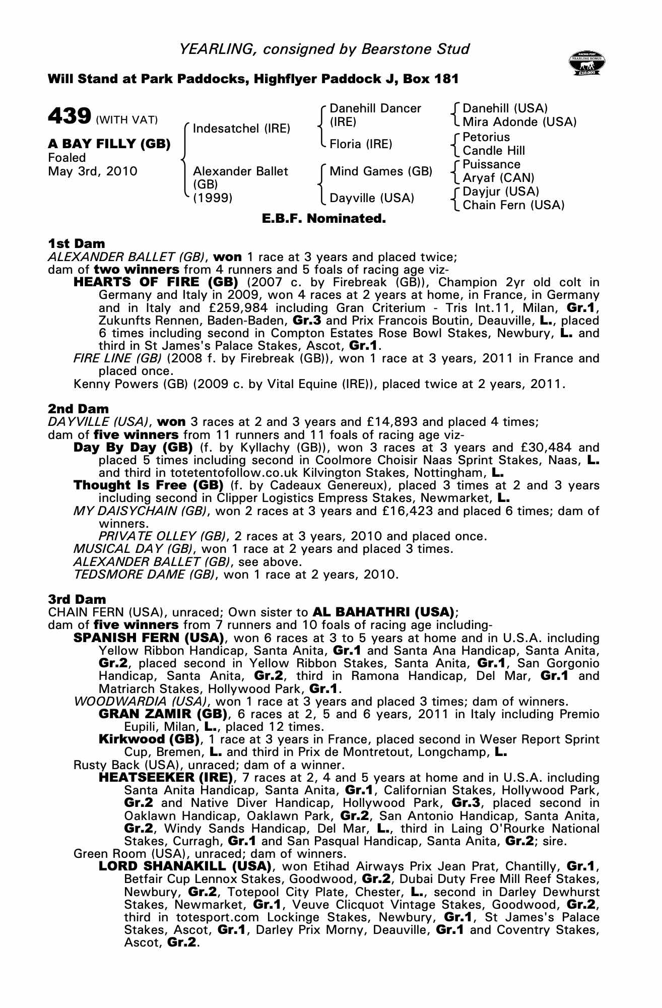 Autumn Horses in Training Sale 2010 lot 405 Hearts of Fire (GB) (C. by Firebreak (GB)), Pat Eddery Racing=>Ibrahim Saeed Al-Malki 550,000 gns