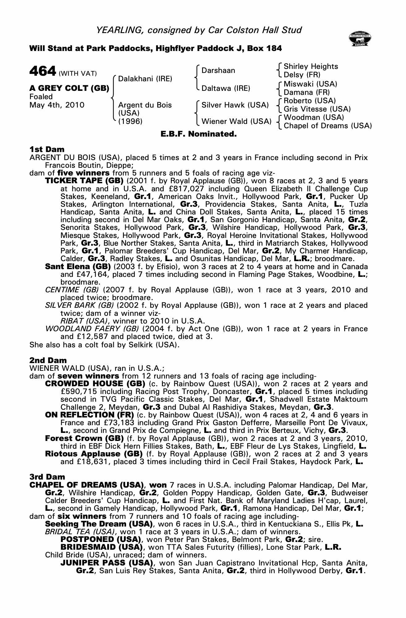 December Foal Sale 2001 lot 954 F. by Royal Applause (GB) , Car Colston Hall Stud=>Vendor 6,500 gns