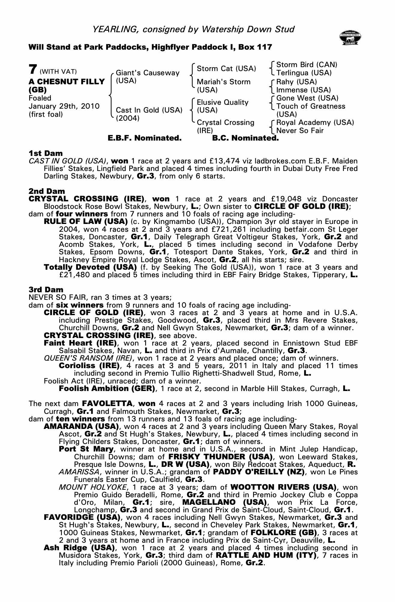 Consignor: Watership Down Stud