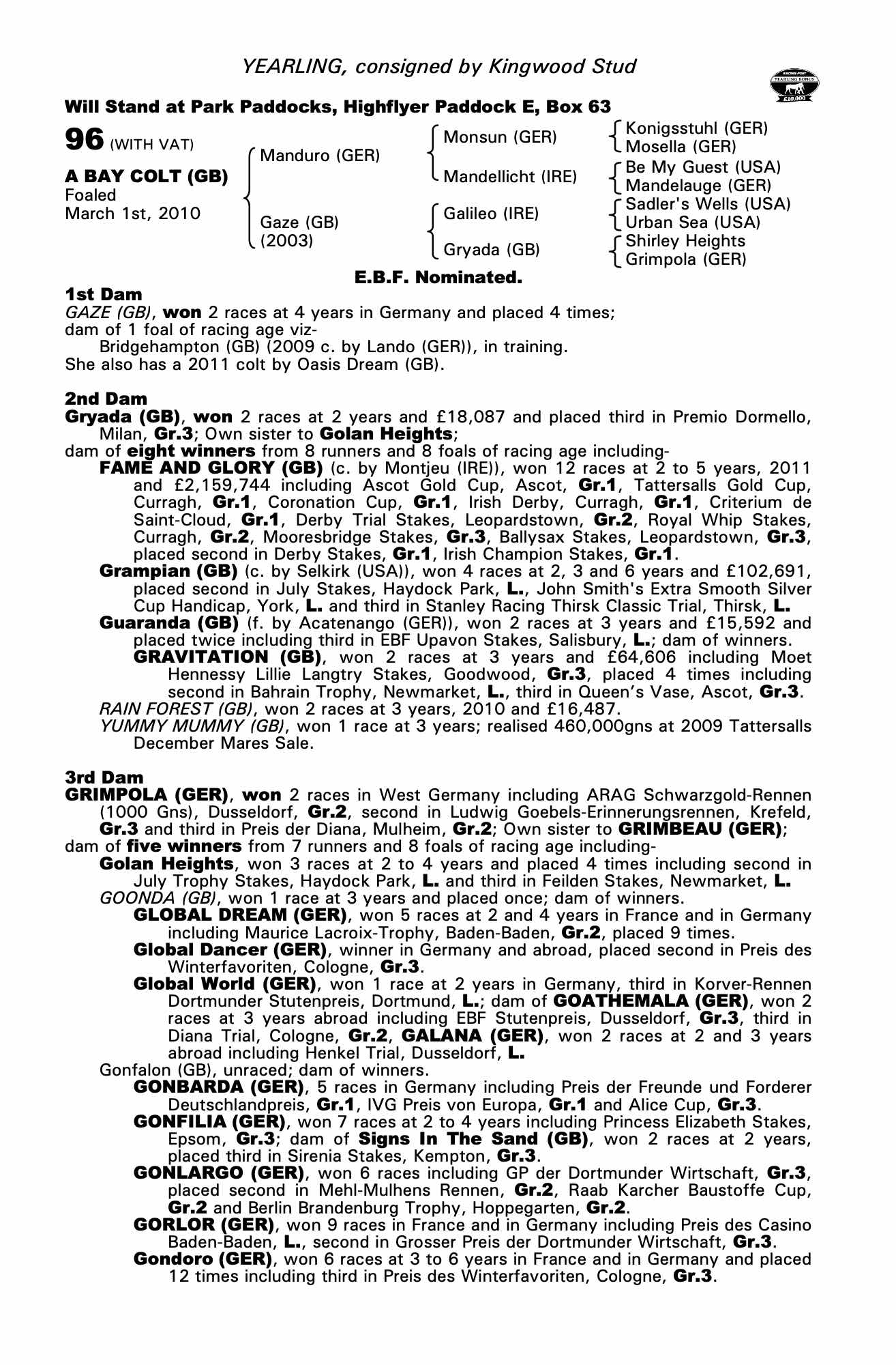 Autumn Horses in Training Sale 2013 lot 1196, Bedford House Stables (L. Cumani)=>McKeever Bloodstock/Gai Waterhouse Racing 180,000 gns