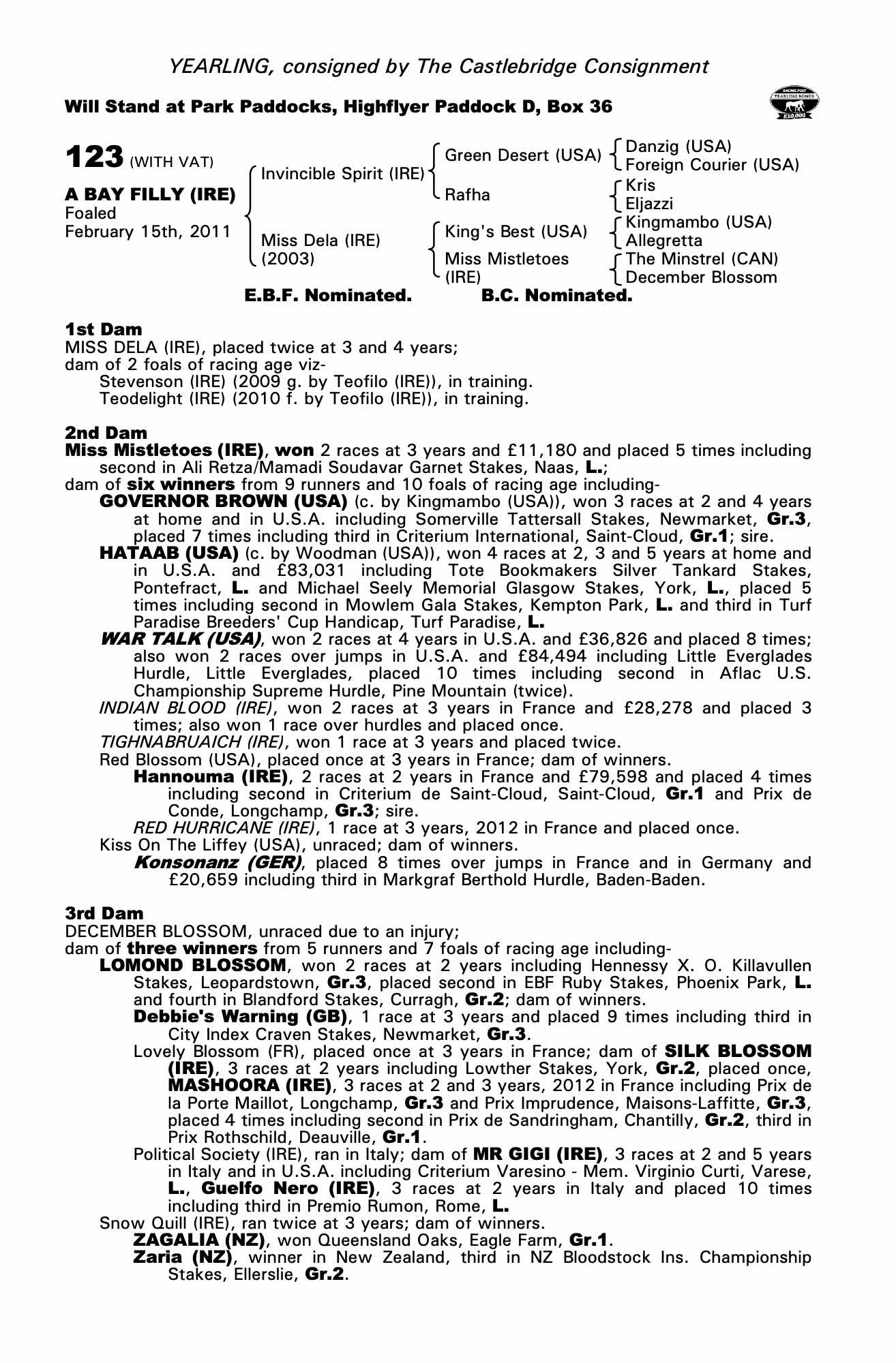 Invincible Spirit (IRE) / Miss Dela (IRE) B.F. (IRE)