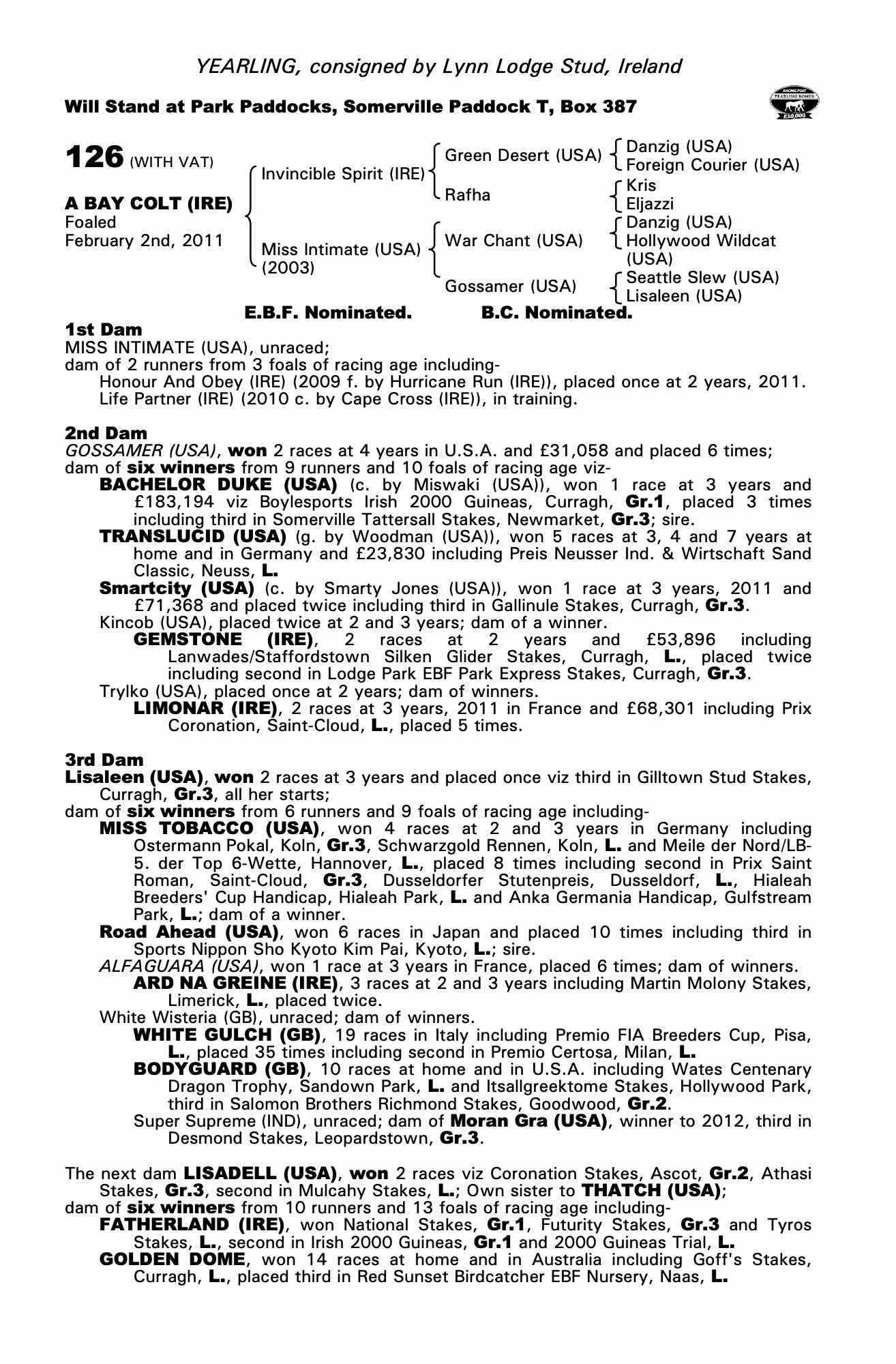 October Yearling Sale, Book 2 2014 lot 1181 F. by Duke of Marmalade (IRE) 2013, Lynn Lodge Stud, Ireland=>Vendor 40,000 gns