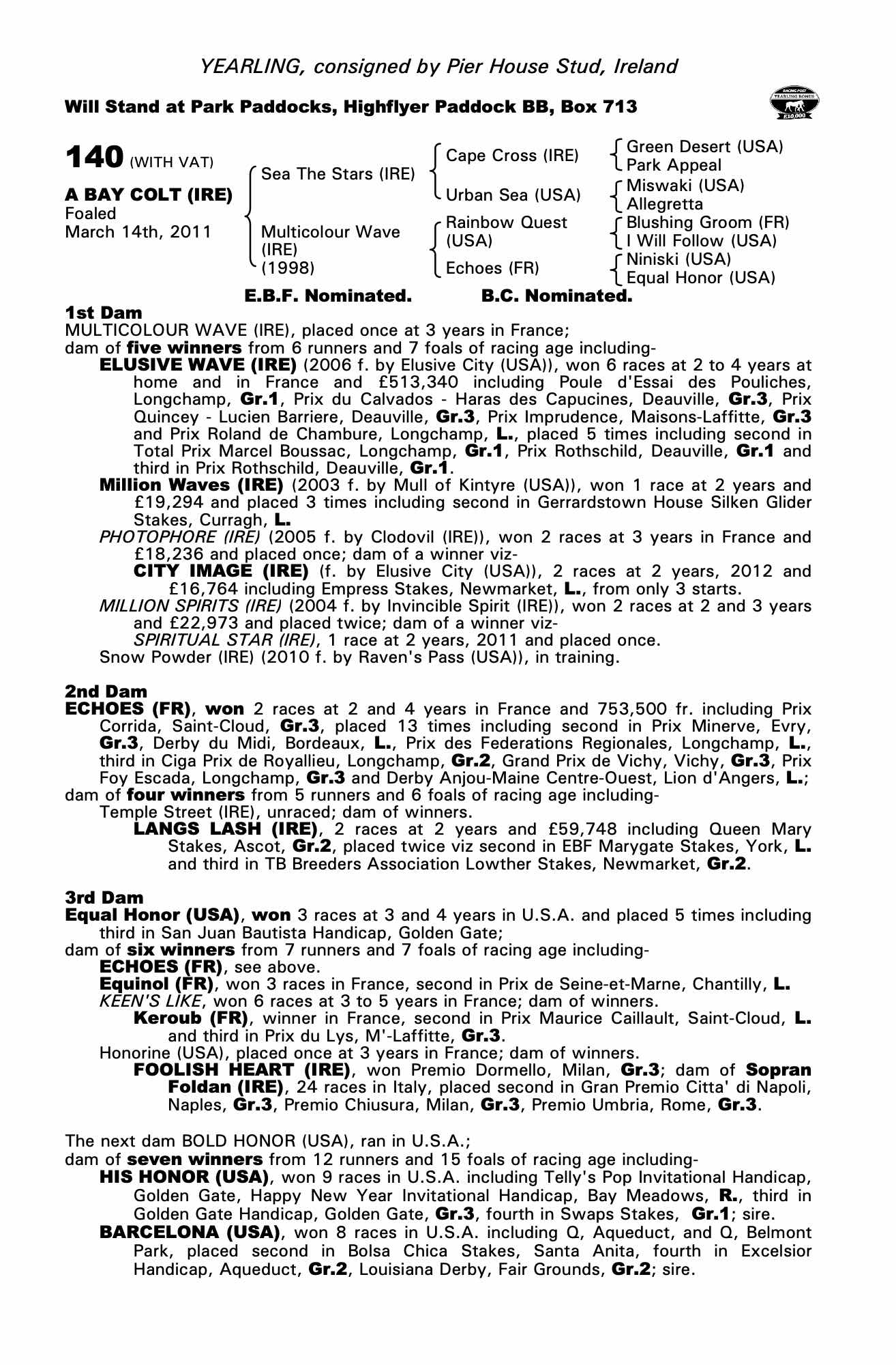 Consignor: Pier House Stud, Ireland