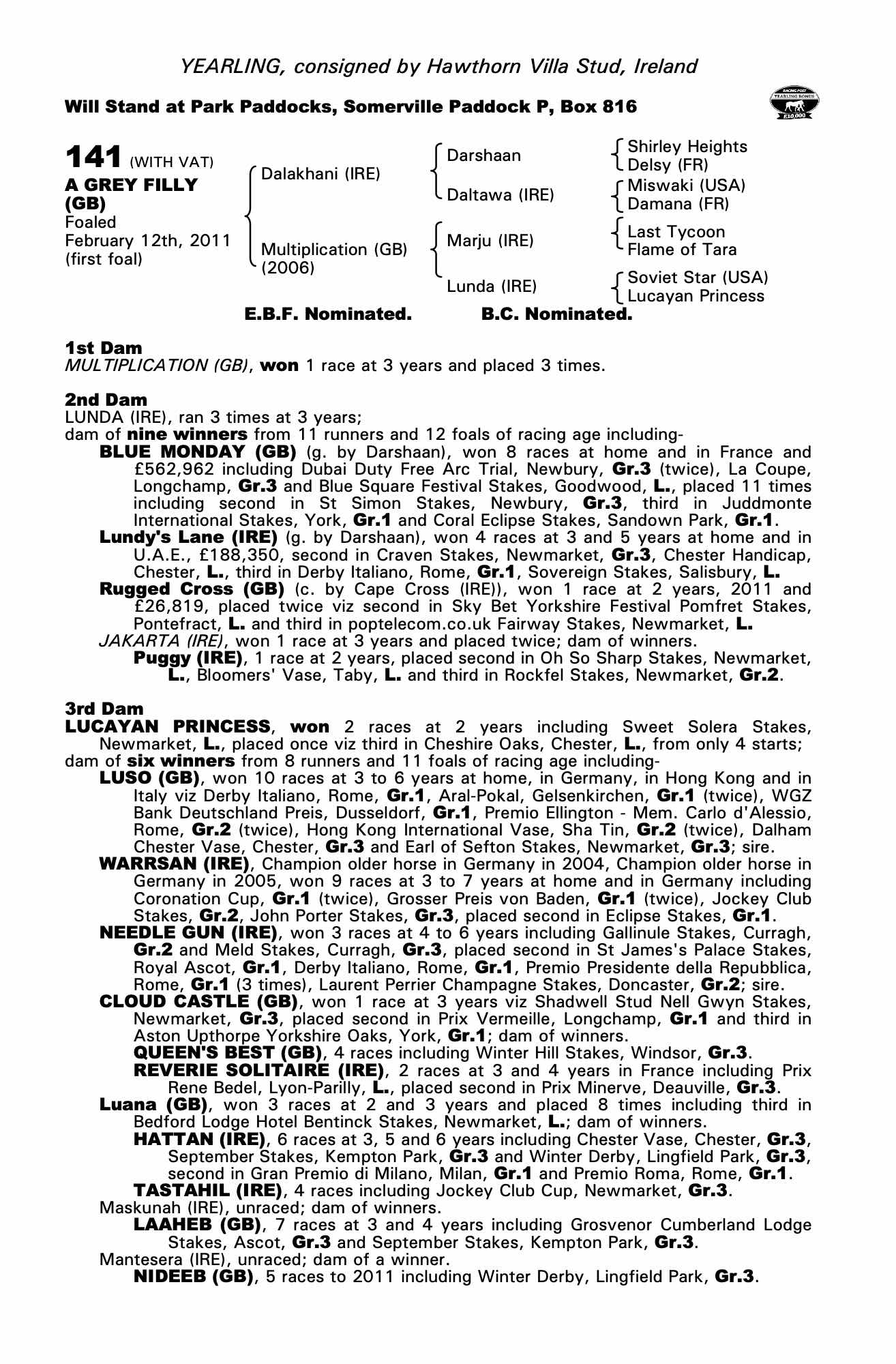 December Foal Sale 2011 lot 950, Oaklands Farm Stud=>Hawthorn Villa Stud 60,000 gns