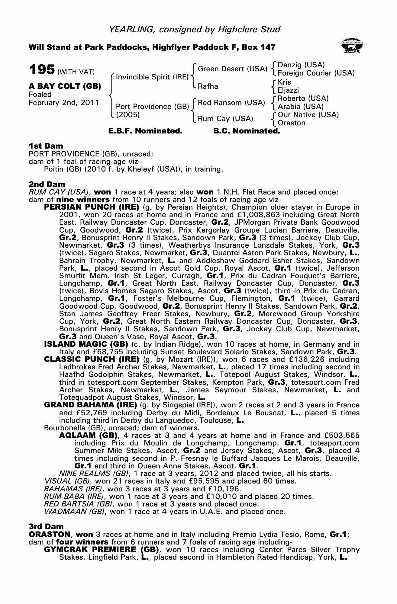 Invincible Spirit (IRE) / Port Providence (GB) B.C. (GB)