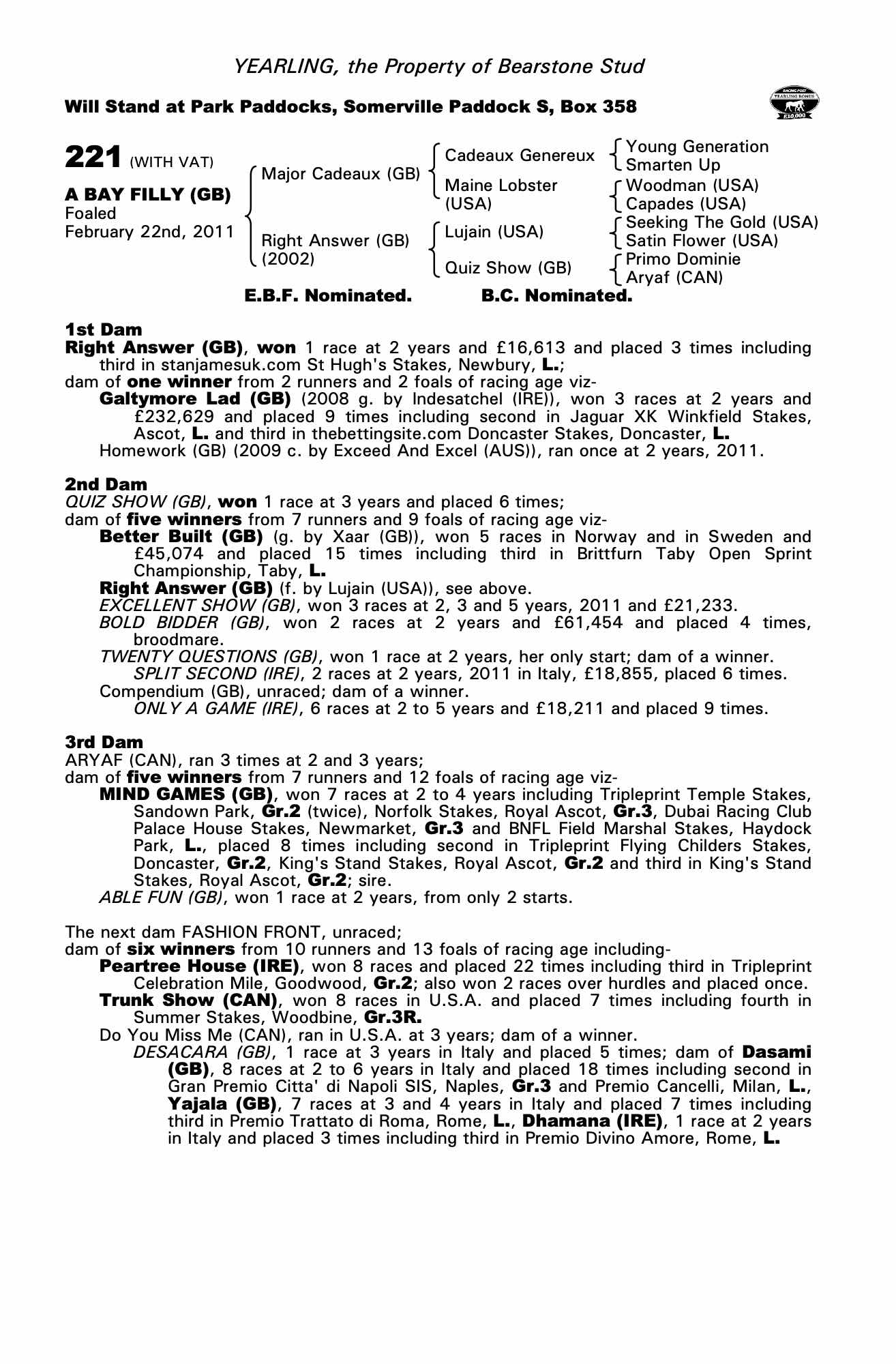 Consignor: Bearstone Stud
