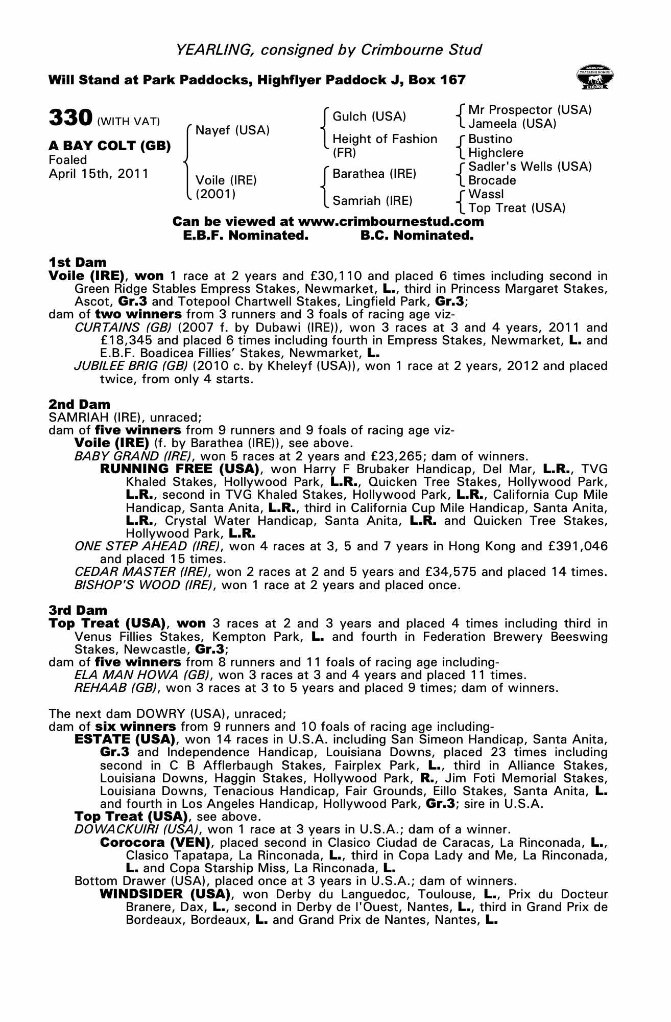 December Mare Sale 2011 lot 1564 Curtains (GB) (F. by Dubawi (IRE)), Crimbourne Stud=>Jill Lamb Bloodstock 18,000 gns