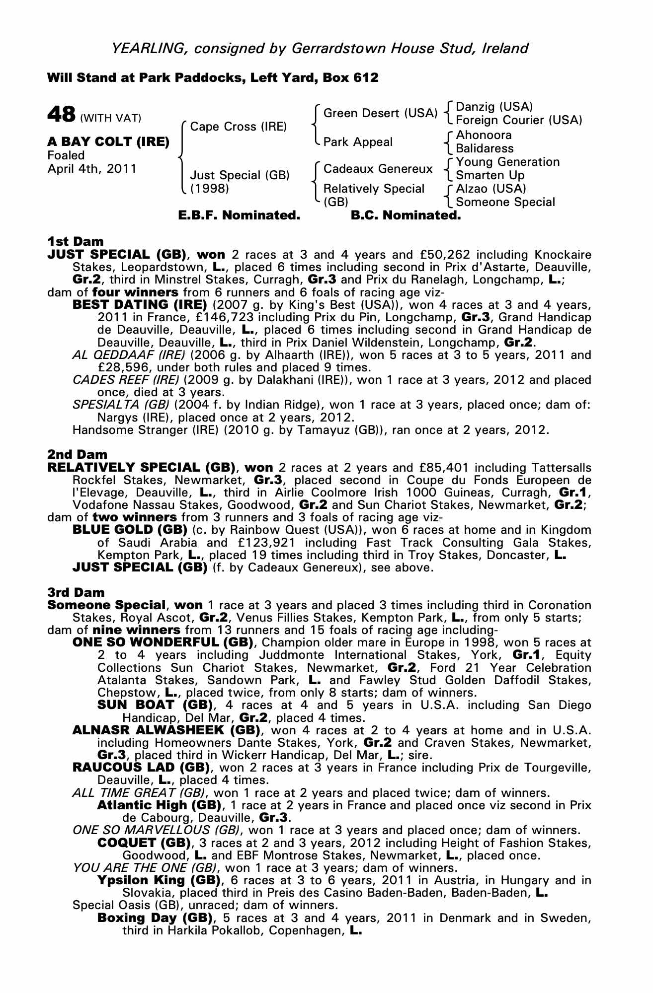 October Yearling Sale, Book 1 2010 lot 327 C. by Dalakhani (IRE) 2009, Gerrardstown House Stud, Ireland=>Andrew Balding 60,000 gns