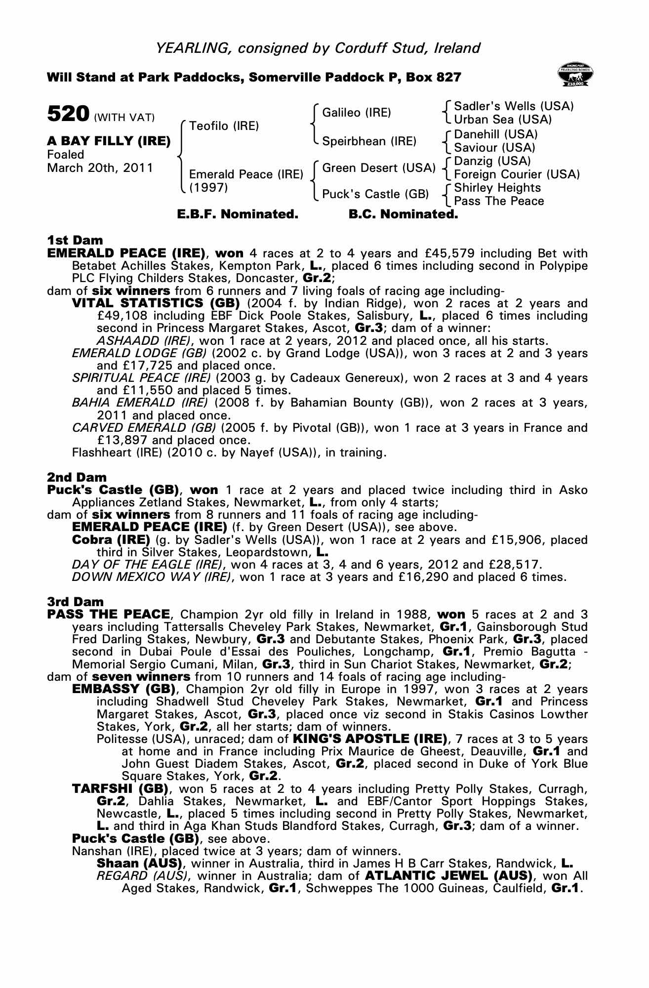 July Sale 2009 lot 98 Carved Emerald (GB) (F. by Pivotal (GB)), Castlemartin Stud, Ireland=>Suzanne Roberts 40,000 gns
