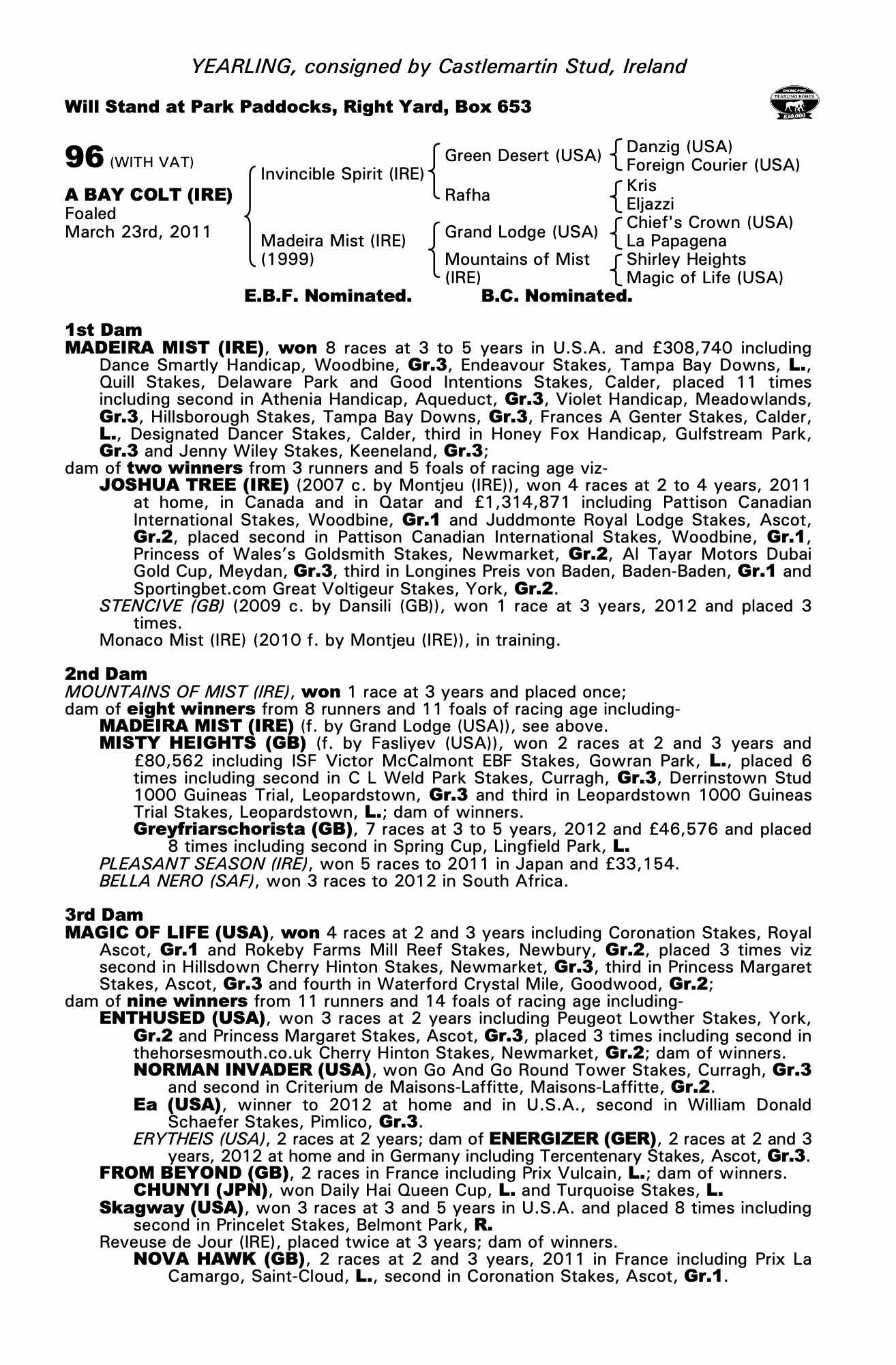 October Yearling Sale, Book 1 2011 lot 182 F. by Montjeu (IRE) 2010, Castlemartin Stud, Ireland=>Vendor 120,000 gns
