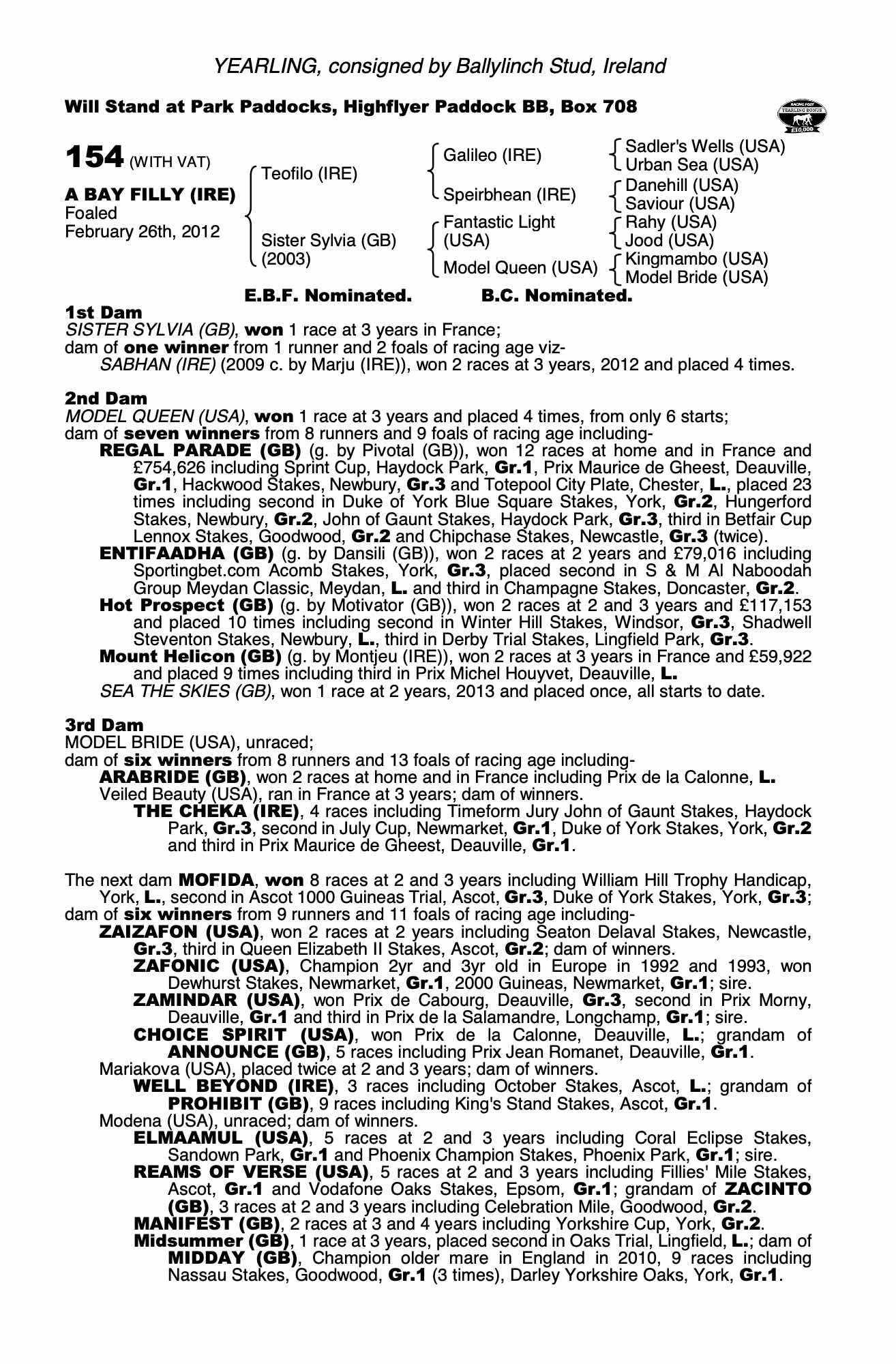 October Yearling Sale, Book 2 2015 lot 1308 F. by Dream Ahead (USA) 2014, Farranamanagh House Stud, Ireland=>Vendor 10,000 gns