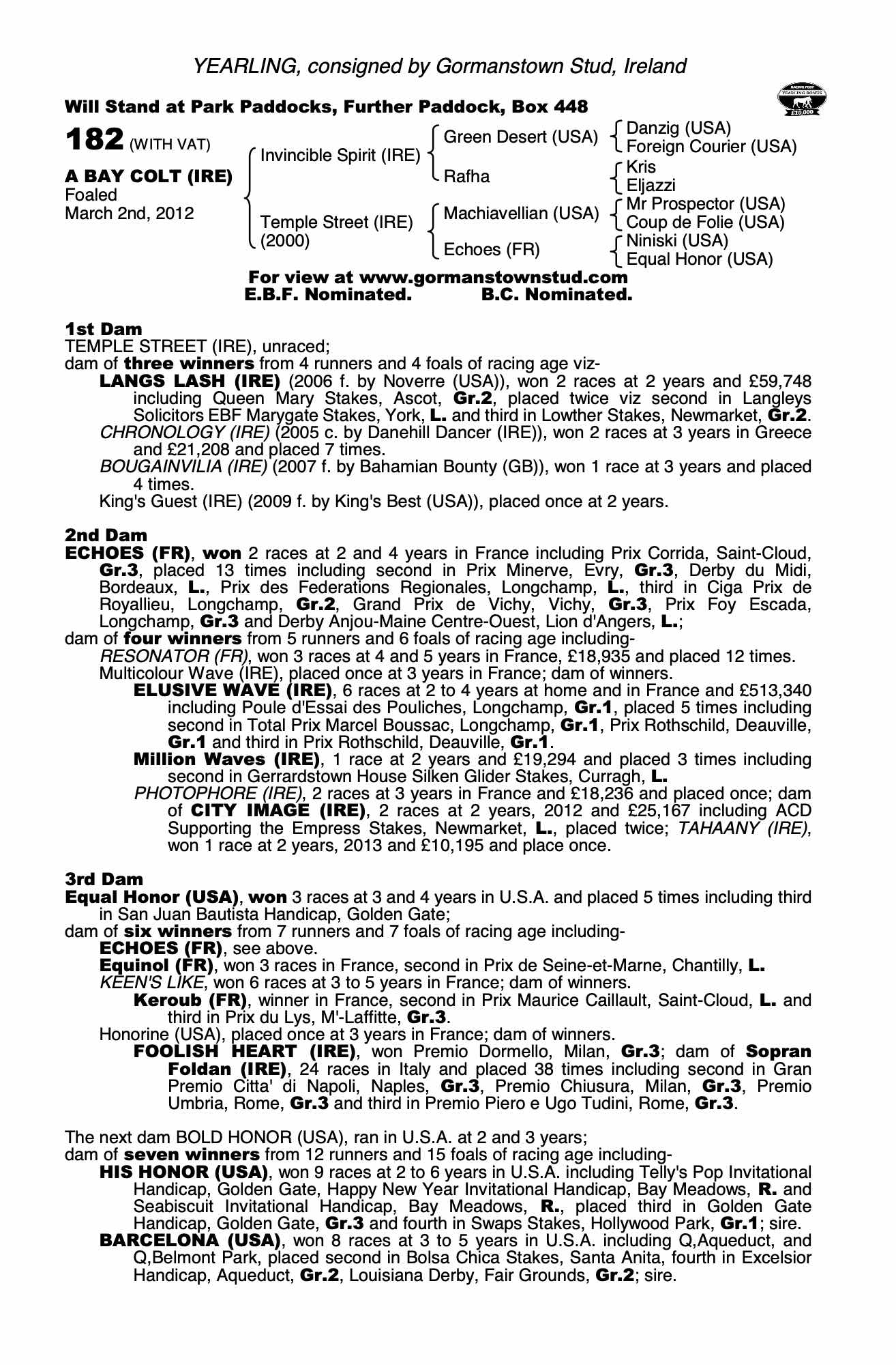 Consignor: Gormanstown Stud, Ireland
